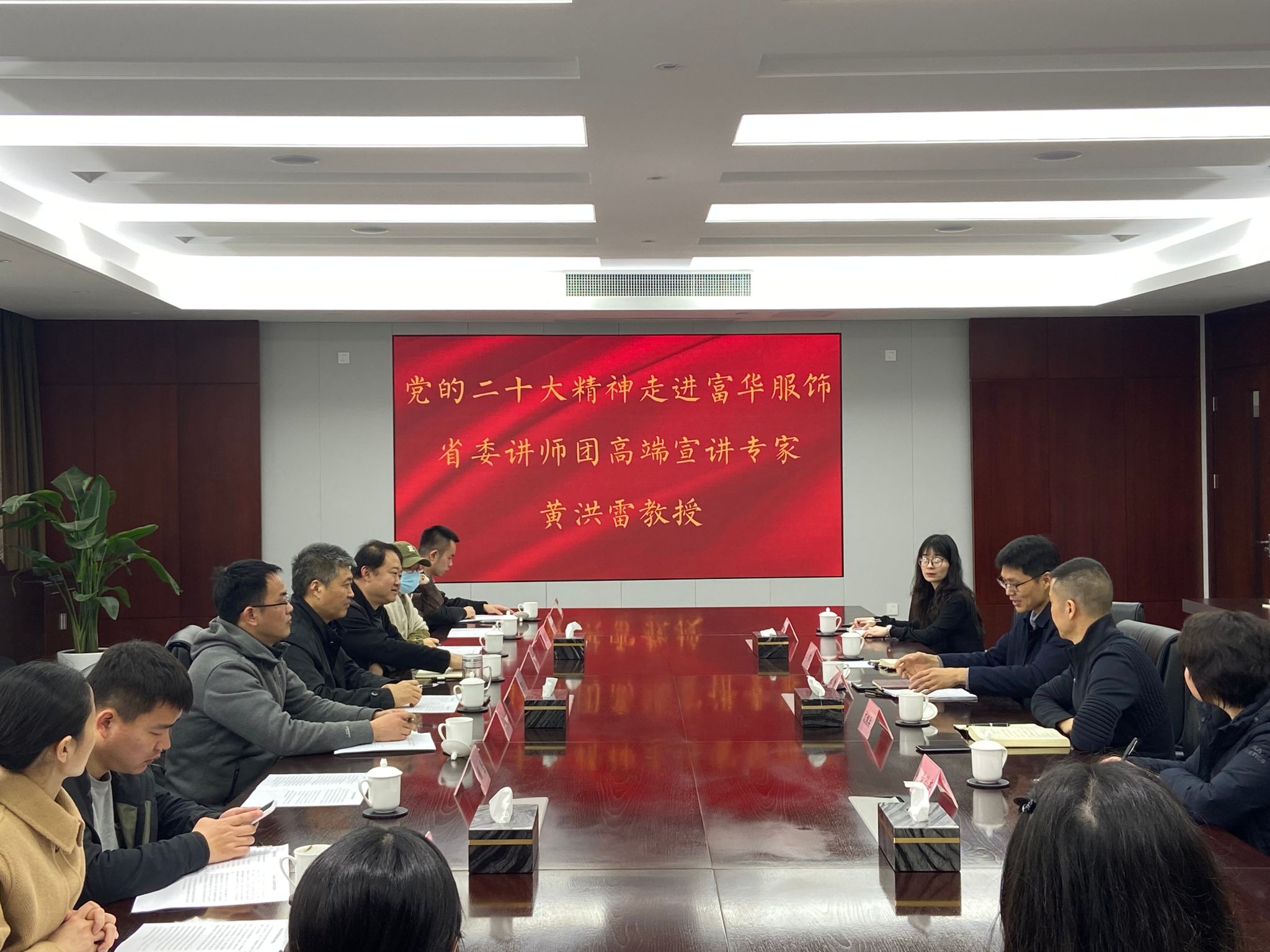 座谈交流中,黄洪雷还为富华服饰有限公司部分党员员工作了党的二十大精神宣讲。