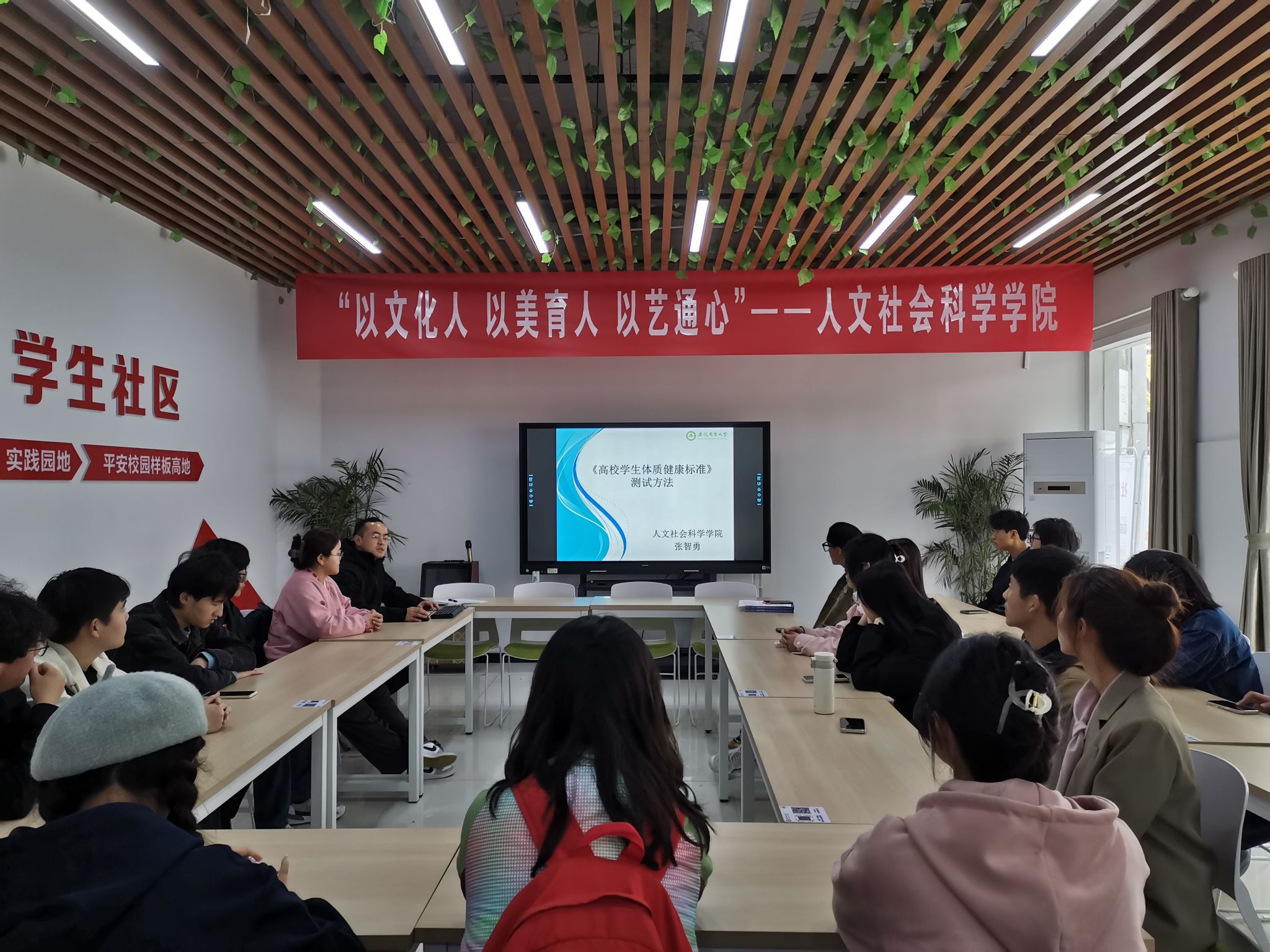 本网讯 为贯彻“五育并举”的教育方针,培养大学生养成良好的运动习惯。3月31日中午,人文社会科学学院在校“一站式”学生社区服务中心开展体育委员培训会。学院团委负责老师,各班级体育委员出席本次会议。