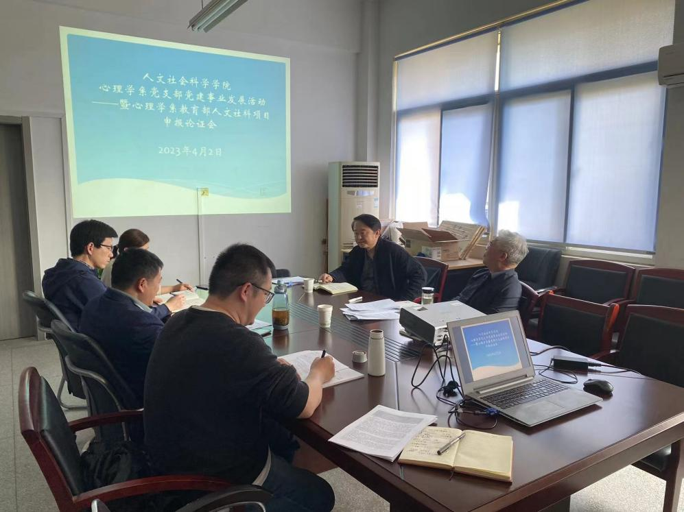 本网讯 4月2日下午,人文社会科学学院心理学系在407办公室举行2023年教育部人文社科基金项目申报论证会。校高教所所长方明、院长黄洪雷应邀出席论证会并做一对一辅导,心理学系负责人和相关申报老师参加论证会。论证会由副院长滕瀚主持。