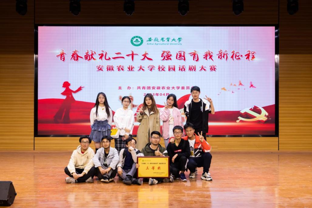 《青春恰自来》讲述了主人公陈璐在步入大学后感受到迷茫,抱着姑且一试的心态加入栽培水稻“安农九号”的科研项目中,在经历学长的引导、室友的质疑、现实的打击后,找到了青春的意义与价值,成为一名坚定自信的科研工作者的故事。本剧由学院中文系王雪松老师指导,郭鹏程、麻荣杰、朱凯轩、杨丹丹、方智明、龙聚达、佘璐瑶、张皓宁、石忆儿、何彦、周鑫雨、李选志等同学参与,本次比赛共有6个学院进入决赛,分别围绕献礼二十大、共筑中国梦、服务乡村振兴、奋斗中国等主题进行深情演绎。给观众展现了一场内容丰富、故事感人、情感细腻、情节跌宕的舞台表演,获得大家的一致好评。