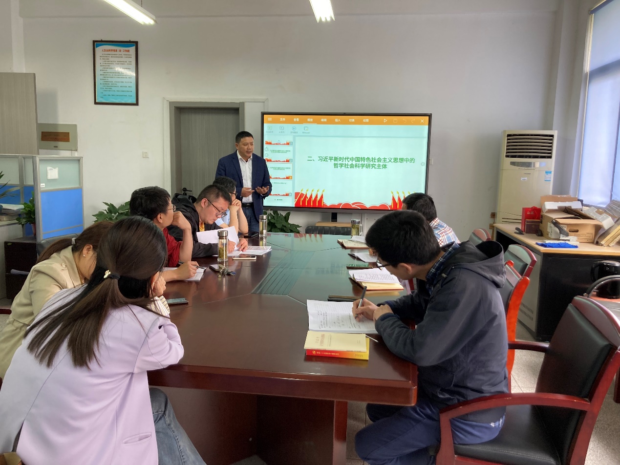 本网讯 5月8日下午,为了进一步学习贯彻习近平新时代中国特色社会主义思想,副院长滕瀚深入心理学系,开展“走深走实走心学习习近平新时代中国特色社会主义思想,体系化有组织推进学院科研提质”主题党课教育活动。心理学系教工党支部成员以及中文、法学、社会工作党支部书记等围绕“体系化有组织推进学院科研提质”进行了学习讨论。