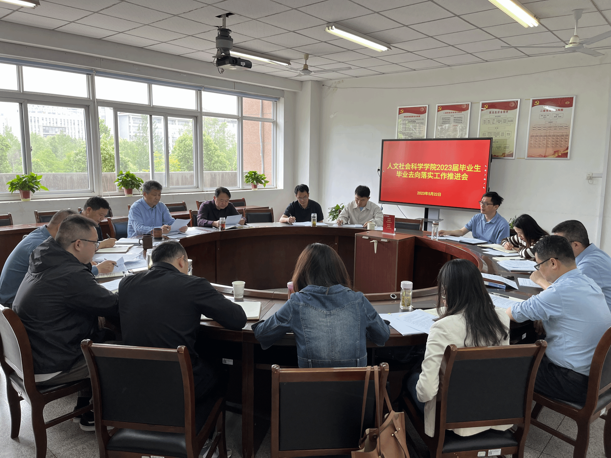本网讯 为推进学院毕业生就业工作,抢抓毕业季就业黄金时期,5月22日,人文社会科学学院召开2023届毕业生就业工作推进会,学院党政领导,各系主任,毕业班辅导员参加会议。会议由学院党委副书记吴永红主持。