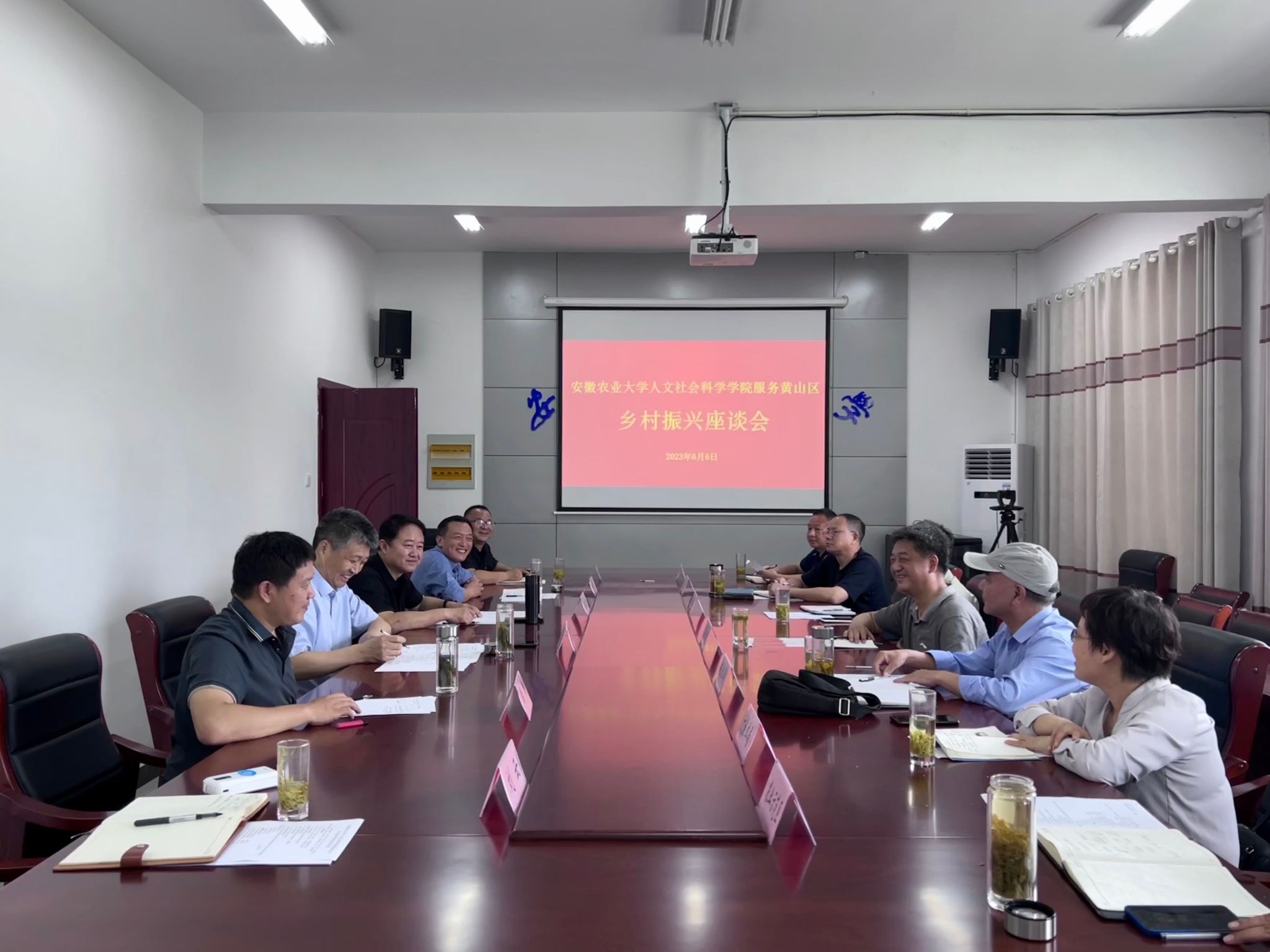 本网讯 为贯彻落实习近平总书记给中国农业大学科技小院学生重要回信精神,将学习贯彻习近平新时代中国特色社会主义思想主题教育转化为助力乡村振兴的深刻实践和具体实效,推动主题教育走深走实,6月5日至6日,人文社会科学学院党委书记陈先玉、院长黄洪雷、副院长滕瀚、新农村发展研究院副院长王华斌等一行前往我校位于黄山市黄山区的皖南综合试验站调研并与黄山区相关部门进行座谈,黄山区副区长苏俊颖及区直有关单位负责人参加此次会议。