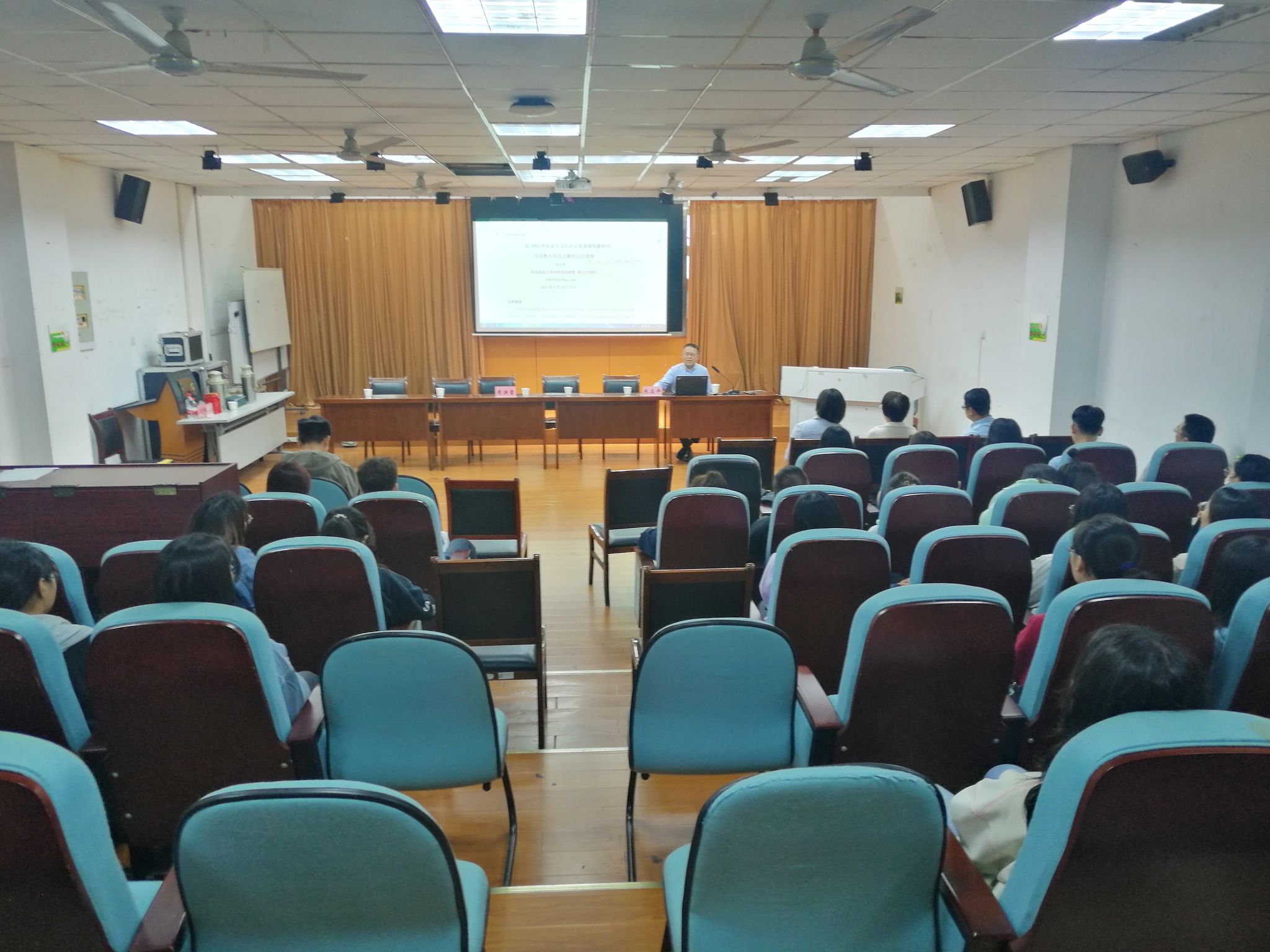 讲座从1954年毛泽东提出立宪的社会主义民主原则作为起点展开,一直谈到新时代背景下全过程人民民主的修宪立法原则的确定。朱教授指出,全过程人民民主的修宪立法原则是指导未来进一步完善宪法和提高立法质量的重要原则。报告会中,朱教授与参加讲座的学生亲切互动,热情为我院学生答疑解惑。