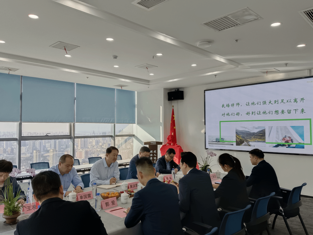 张俊首先对黄洪雷一行表示热烈欢迎,介绍天驰君泰(合肥)律师事务所的发展情况及其培养青年律师的发展特色,对安徽农业大学人文社会科学学院对天驰君泰(合肥)律师事务所的信任表示感谢。张俊表示共建实践实习基地是有效衔接理论教学和实践教学的方法,邀请学生常态化参加律师事务所内的培训课程,既能有助于专业学生能尽早了解律师行业,做好职业规划,也能帮助专业学生提高实务技能。