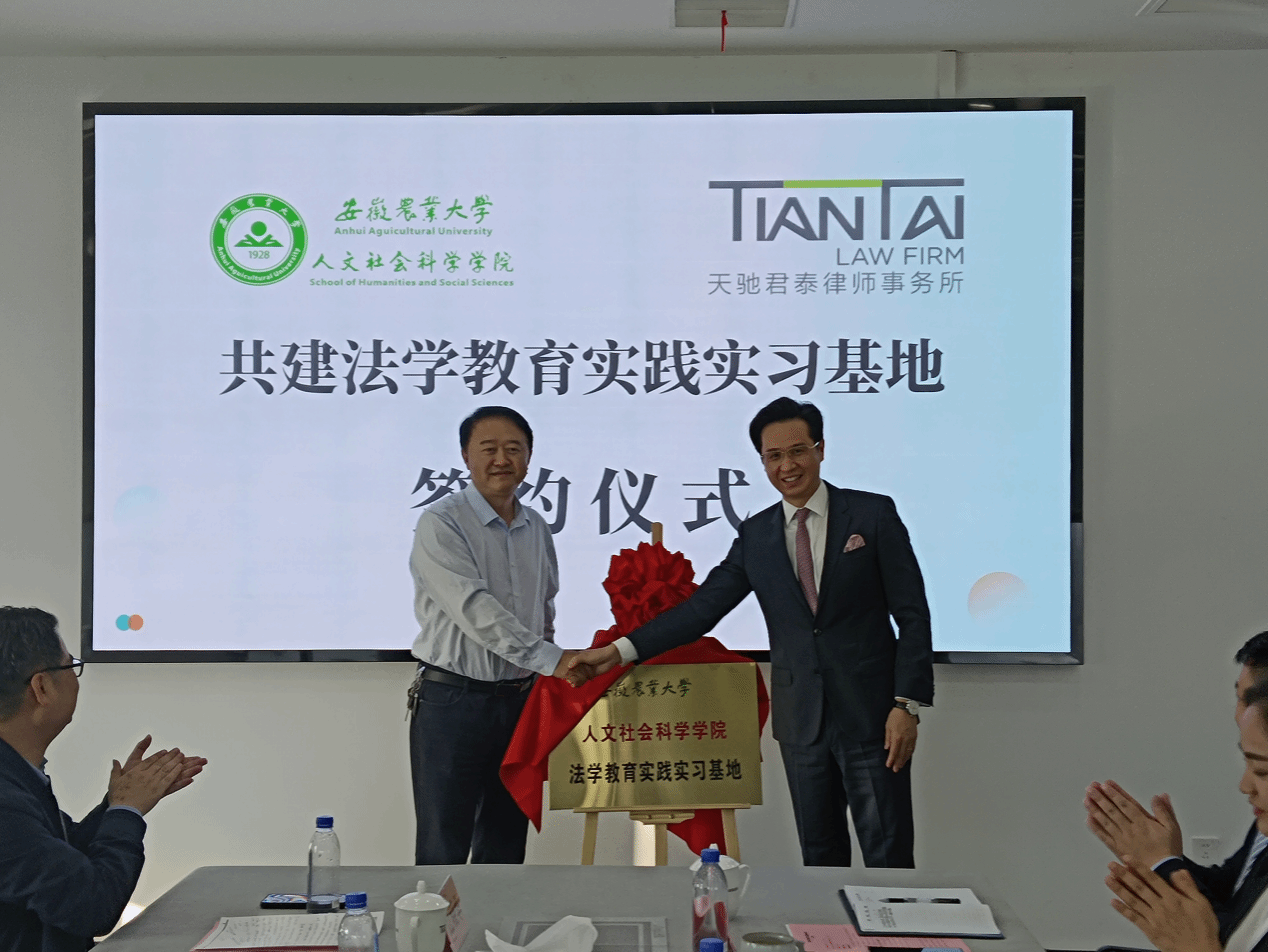 本网讯 为深化校所合作育人,不断提高学生的理论和实务贯通能力,拓宽法学专业实习和就业渠道。11月2日下午,人文社会科学学院与北京天驰(合肥)律师事务所联合共建法学教育实践实习基地举行挂牌仪式。人文社会科学院院长黄洪雷,副院长滕瀚、单国雷,法学系主任江晓华,法学系教师王凌燕,天驰君泰(合肥)律师事务所执行主任张俊,高级合伙人郭爱、汪泳艳,合伙人江勇波、申德林等出席签约揭牌仪式。
