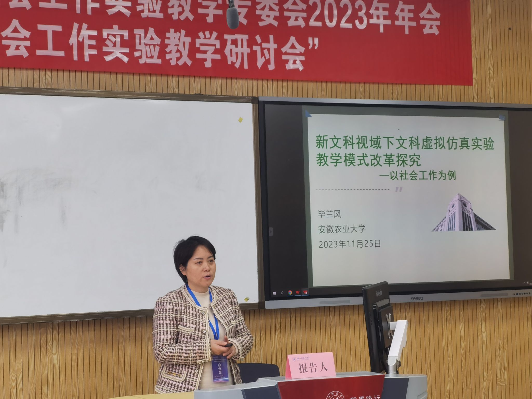 本网讯11月25-26日,由中国社会工作教育协会社会工作实验教学专委会主办的“2023年中国社会工作教育协会社会工作实验教学专委会年会暨第四届社会工作实验教学研讨会”在乐山师范学院成功举办,我院实验中心副主任毕兰凤老师参加会议。
