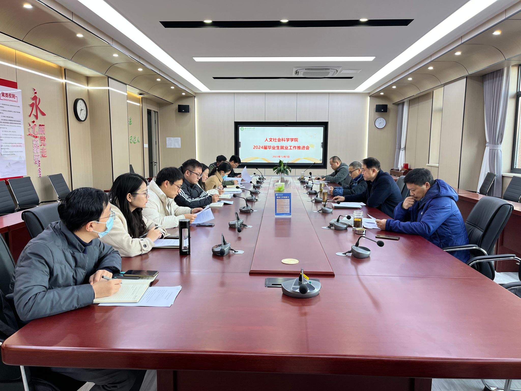本网讯 为贯彻落实2024届全国高校毕业生就业创业工作视频会会议精神。12月7日下午,人文社会科学学院召开2024届毕业生就业工作推进会,学院党委书记王冬平、院长黄洪雷、副院长滕瀚,各系部主任、毕业班辅导员参加会议。会议由副院长单国雷主持。