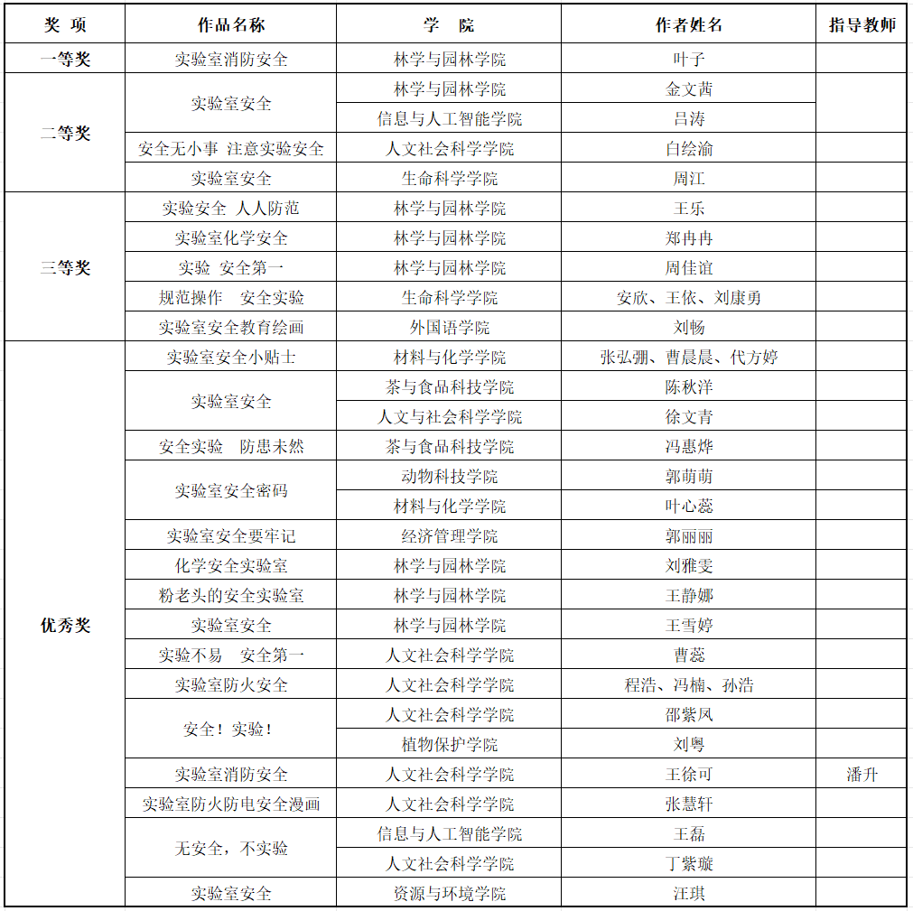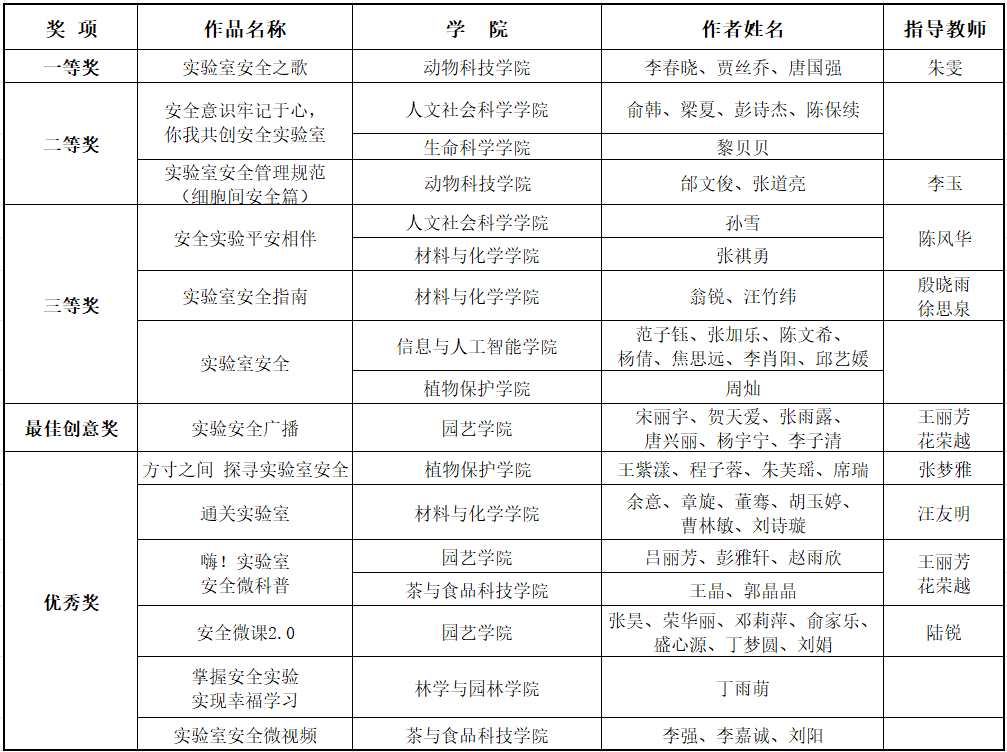 本网讯 近日,由校实验室安全管理中心、团委联合举办的实验室安全微视频、绘画大赛圆满结束,我院学生在大赛中表现出色,共荣获10个奖项,其中微视频作品二等奖1项,三等奖1项,绘画作品二等奖1项,优秀奖7项,获奖比例占总获奖数量的27%。