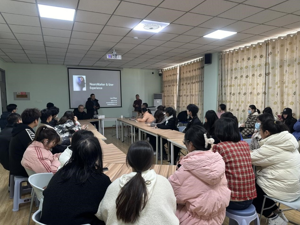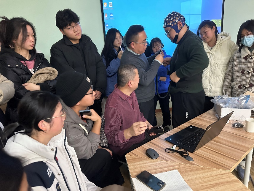 赵仑博士围绕脑电用户体验研究方法、用户体验内容以及实际应用案例等方面详细展开了培训,并针对师生提出的问题给予了专业的解答。随后,由我院本科生和研究生轮流作为主试和被试,在赵仑博士和江苏睿脑技术人员的指导下,现场开展了多轮体验式的脑电技术培训。在场参与培训的师生纷纷表示,本次培训极大地满足了他们未来对于认知神经心理学教学科研需求以及拓展了对于脑电研究的求知探索欲。