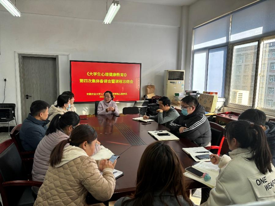 本网讯 1月12日下午,人文社会科学学院心理学系在人文楼407心理学系办公室召开《大学生心理健康教育I》第四次集体备课会暨课程总结会,心理学系主任刘燊、学院教学秘书昌蔚以及承担《大学生心理健康教育I》课程的全体教师参加会议。会议由《大学生心理健康教育I》课程组长王东主持。