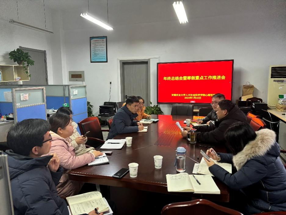 本网讯 1月22日下午,人文社会科学学院心理学系召开年终总结会暨寒假重点工作推进会,心理学系全体教师参加,心理学系主任刘燊主持会议。