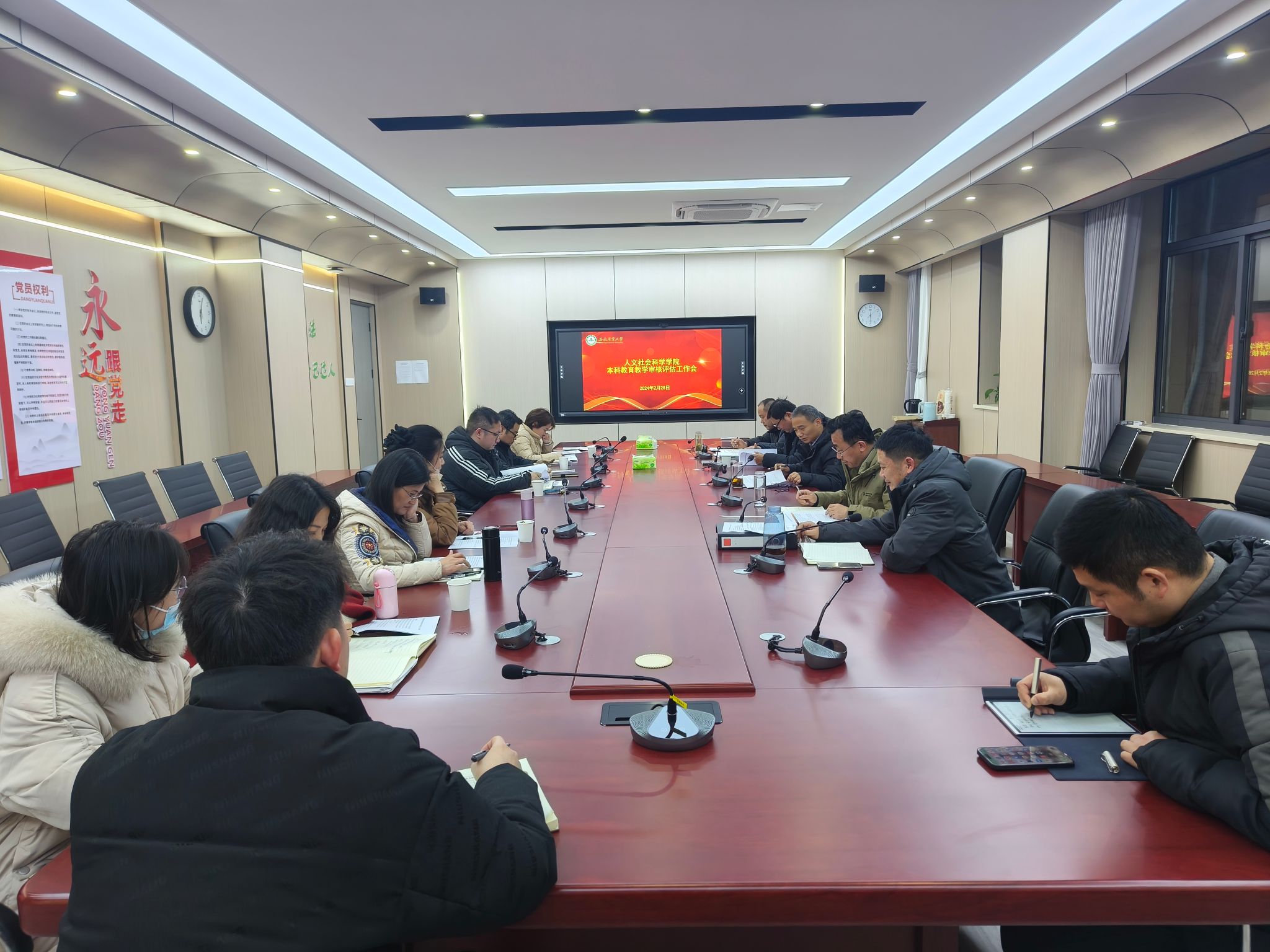 本网讯 2月28日下午,人文社会科学学院召开本科教育教学审核评估工作部署推进会。教务处副处长徐峰到会指导,学院党政领导王冬平、方国武、单国雷及各系部(实验中心)主任参加会议,会议由副院长滕瀚主持。