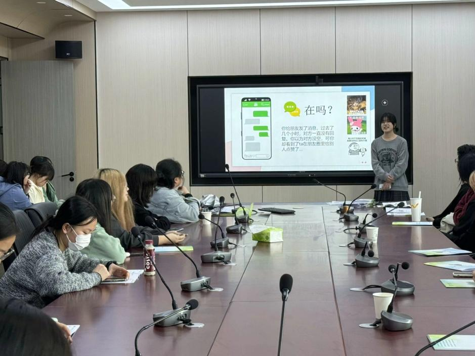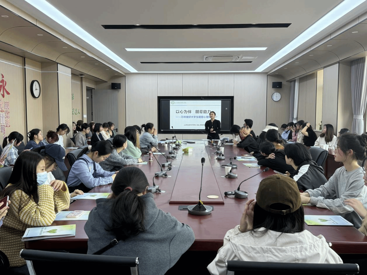 本网讯 为积极有效发挥人文社会科学学院二级心理辅导站心理育人作用,加强大学生朋辈心理辅导队伍建设。3月21日,学院在人文楼202室开展培训。学院心理联络员姚吴仪、2023级班级心理委员、2023级宿舍心理联络员、学院学生会(心联会)成员参加。