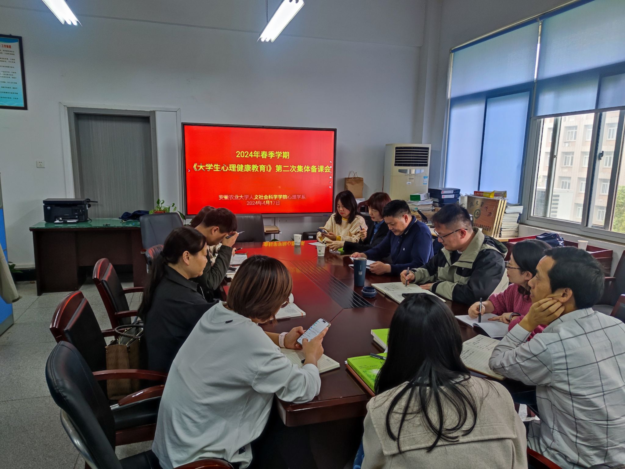 本网讯 为提升教师课堂教学能力,发挥课堂教学的主阵地作用,提升教育教学质量,人文社会科学学院组织各系部开展集体备课。4月17日下午,学院心理学系组织2024年春季学期《大学生心理健康教育I》第二次集体备课会。人文社会科学学院副院长滕瀚、心理学系主任刘燊、学院教学秘书昌蔚以及全体任课老师参加备课会,备课会由课程组长王东主持。