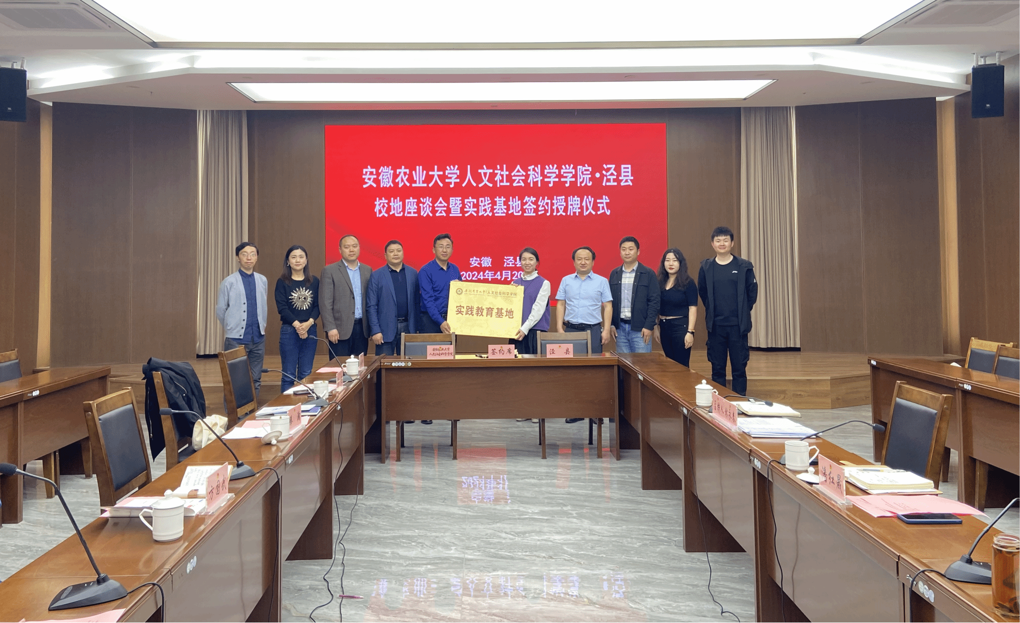 本网讯 4月20日,人文社会科学院学院院长方国武、党委副书记单国雷、副院长滕瀚等一行,赴泾县与泾县团县委等单位签署共建实践教育基地协议。泾县组织部常务副部长潘红晟,团县委书记杨勤、副书记林永春参加授牌仪式,并就如何更好地开展校地合作举行座谈交流。