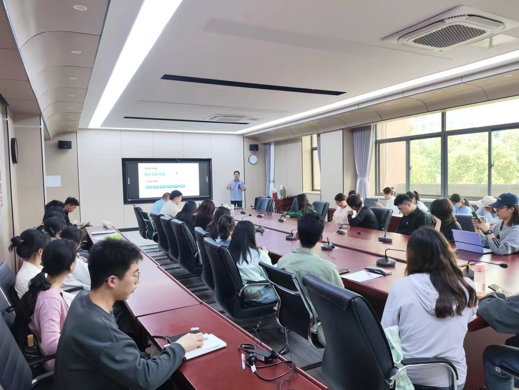 本网讯 4月29日下午,人文社会科学学院在206会议室开展中国国际大学生创新大赛专题辅导,邀请了中国国际大学生创新大赛国赛专家库成员、国家农业众创空间宣晟农创总经理童凯主讲,申报中国国际大学生创新大赛(2024)项目指导老师、主创成员参加会议。会议由学院党委副书记单国雷主持。