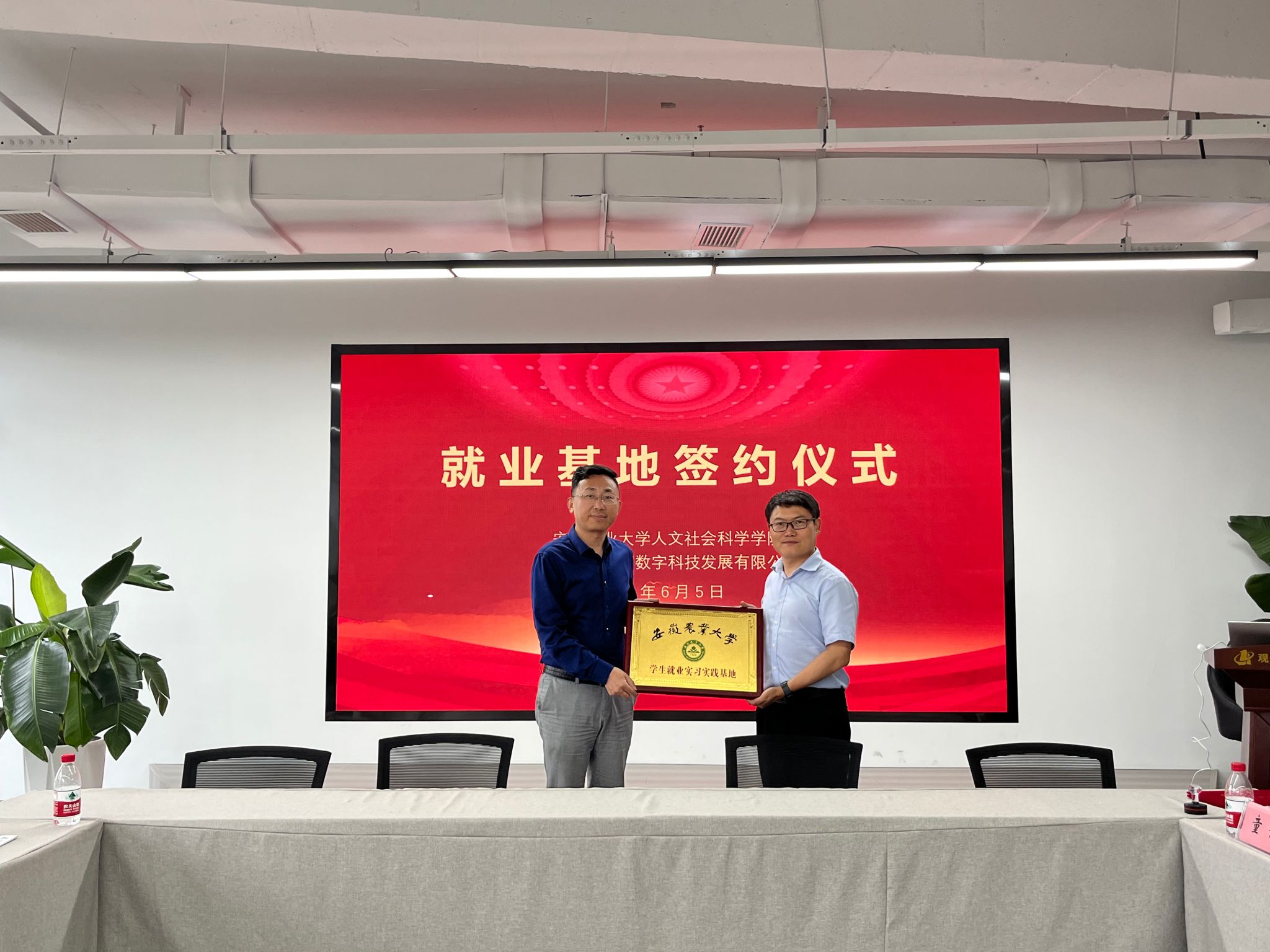 会前,校领导一行参观了企业的运营场所和工作环境,深入了解了企业文化。会上,双方签订了《安徽农业大学就业基地协议书》,举行就业实习实践基地授牌仪式。(图文/司海峰 编辑/张智勇 预审/单国雷 审核/王冬平)