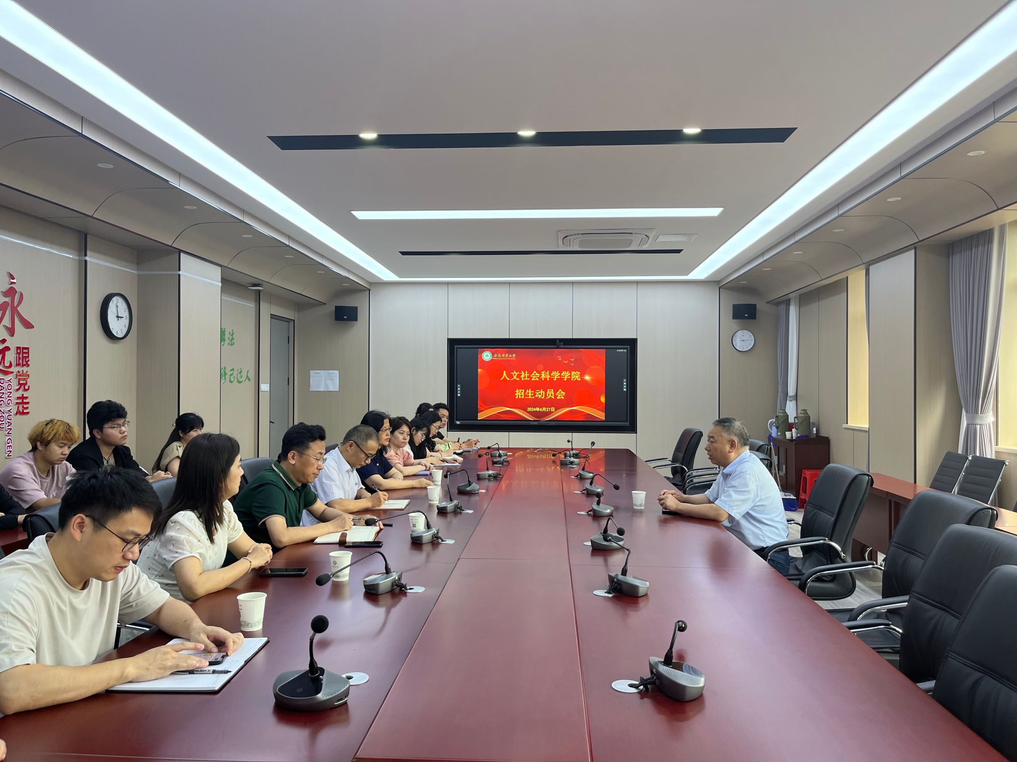 本网讯 6月27日下午,校党委常委、纪委书记、监察专员陈文兵到人文社会科学学院指导招生宣传工作,学院党政领导班子、2024年参加招生宣传工作的师生参加会议。