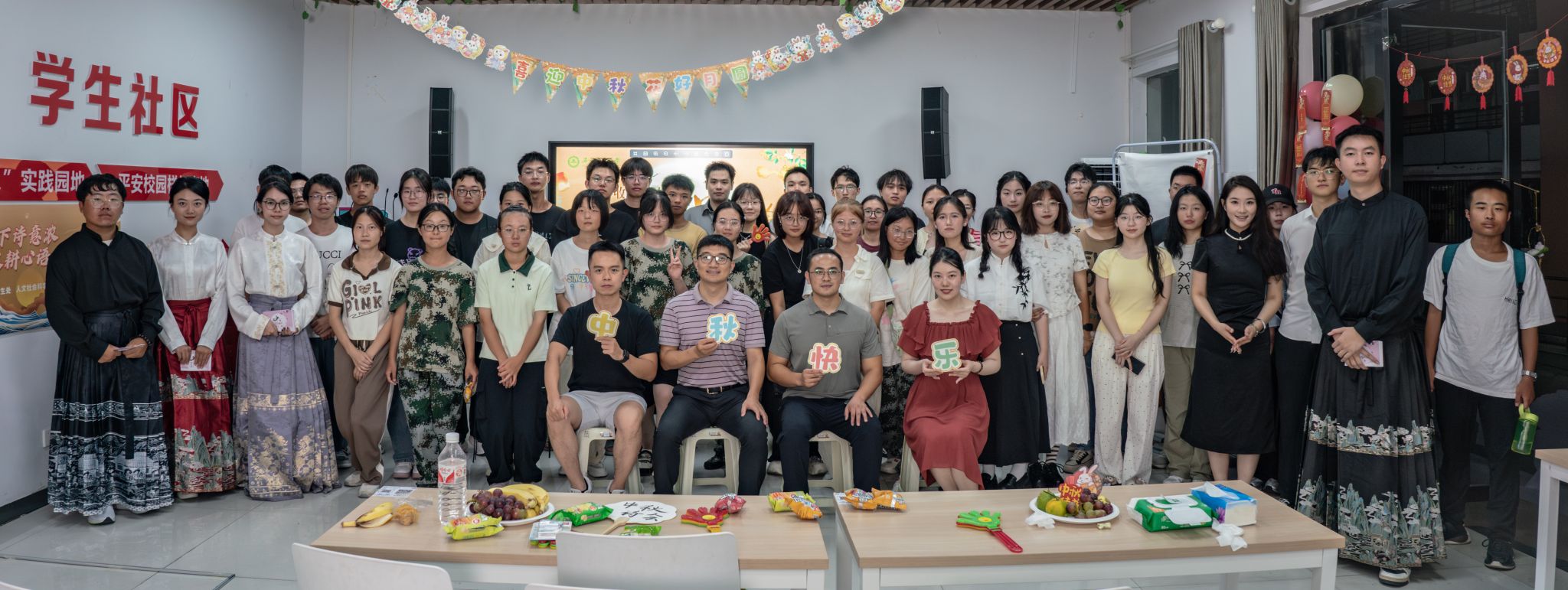 本网讯 平分秋色一轮满,长伴云衢千里明。9月14日晚,由安徽农业大学党委学生工作部、武装部、学生处主办,人文社会科学学院承办的新生入学教育系列活动之“丰收月下诗意浓,农耕心语中秋吟”中秋诗歌会在大学生“一站式”社区举行。党委学生工作部、武装部、学生处部(处)长任琪、副处长吕大鹏,人文学院党委副书记孙辉老师、辅导员参加活动。师生欢聚一堂,共同感受中华文化的魅力与家国情怀的温暖。