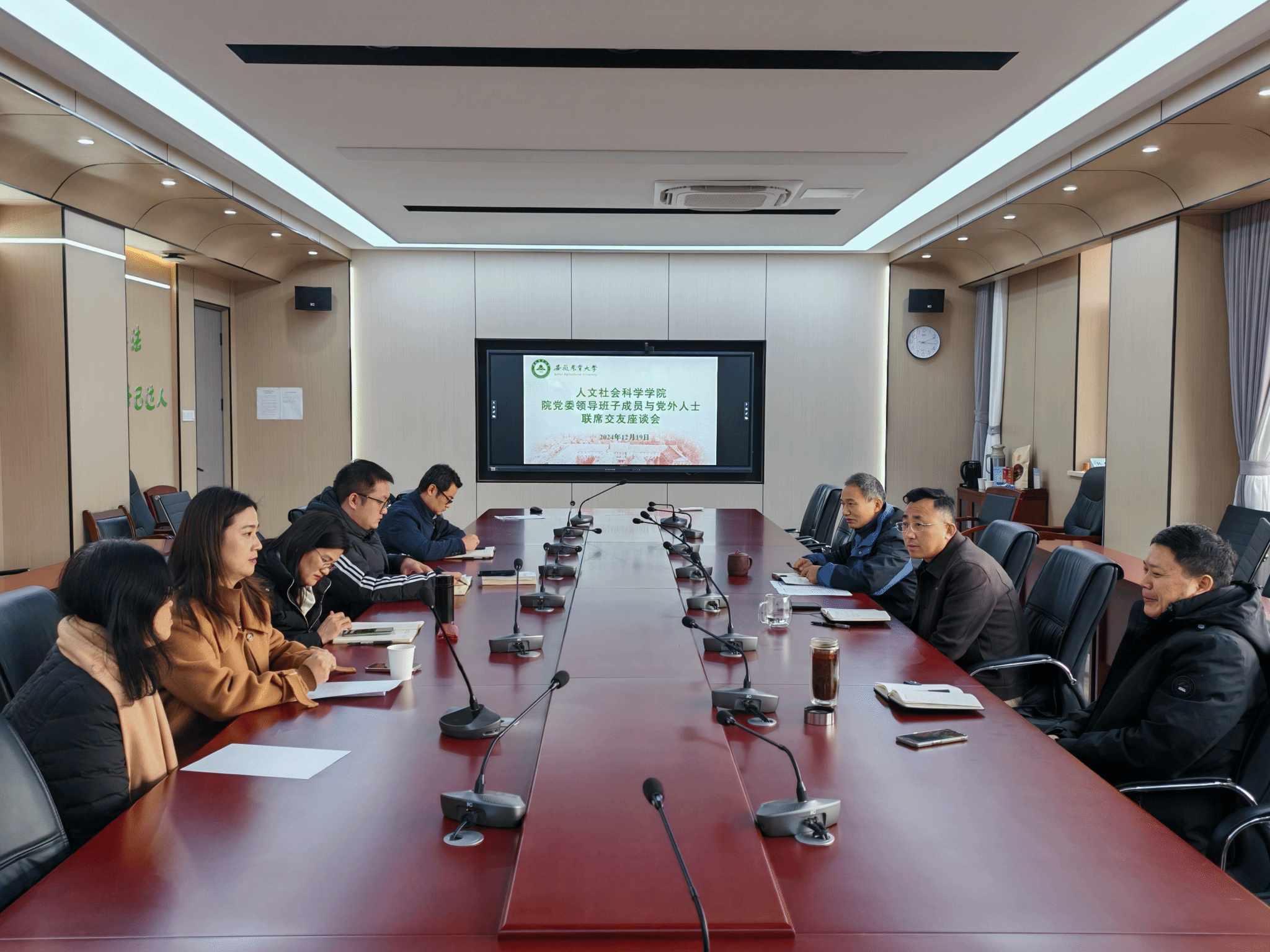 本网讯 12月19日下午,人文社会科学学院在学院206会议室举办了学院领导班子与党外人士联系座谈会,学院党委书记王冬平、院长方国武、副院长滕瀚、党外人士代表出席会议,会议由王冬平主持。
