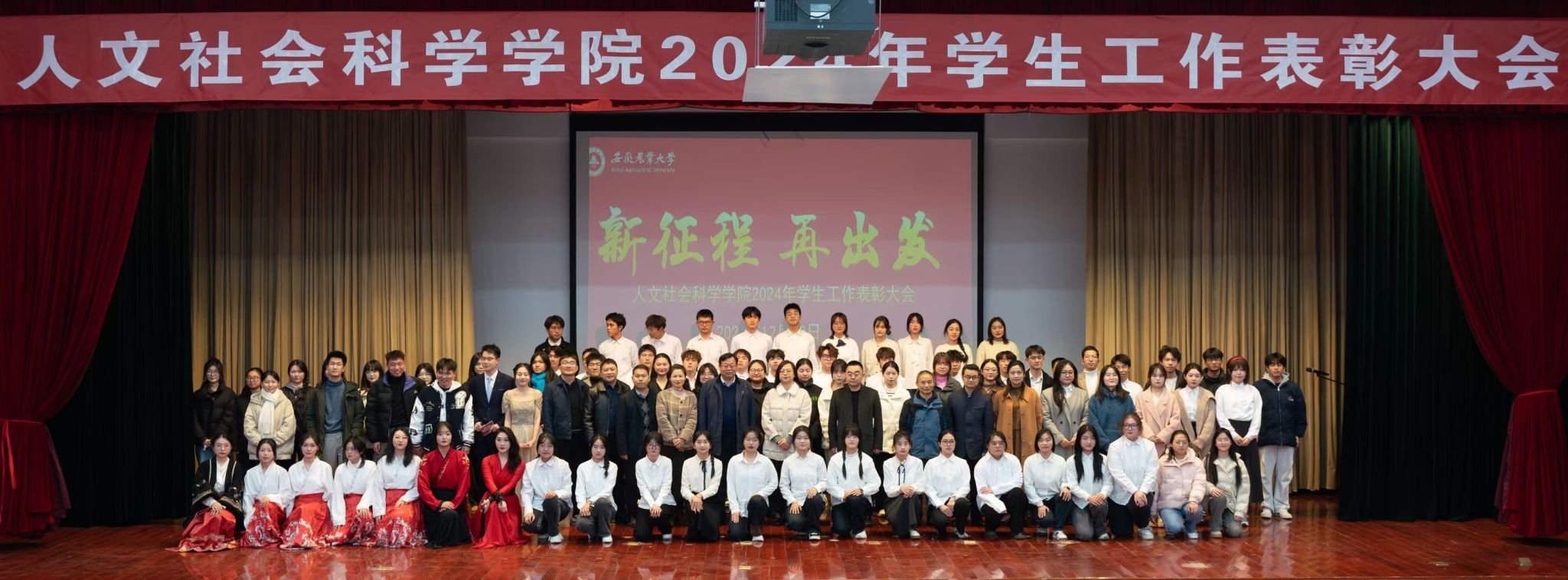 本网讯 12月20日,人文社会科学学院“新征程 再出发”2024年学生工作表彰大会在校图书馆第一报告厅举行。校教务处处长江海洋、学生处处长任琪、宣传部副部长夏晓昀、团委副书记陈公伟、2008级法学专业校友张帅、学院党政领导、各系部主任、师生代表共400余人参加大会。