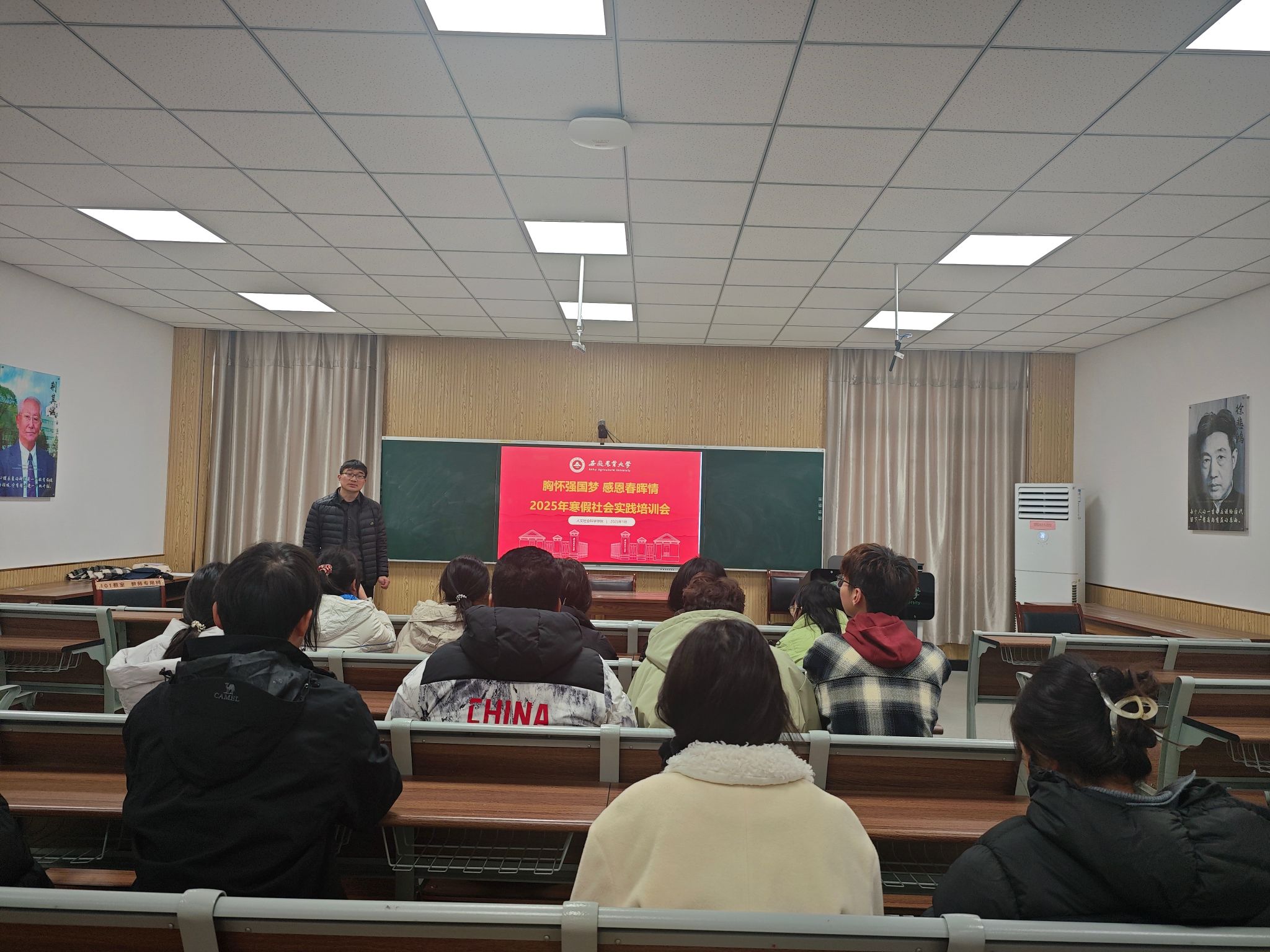 本网讯 1月6日上午,人文社会科学学院在人文楼202举办2025年寒假“母校行”社会实践活动培训会。往届优秀回访团队学生代表以及2025年寒假“母校行”活动各团队负责人出席本次活动。活动由学院招生联络员姚吴仪主持。