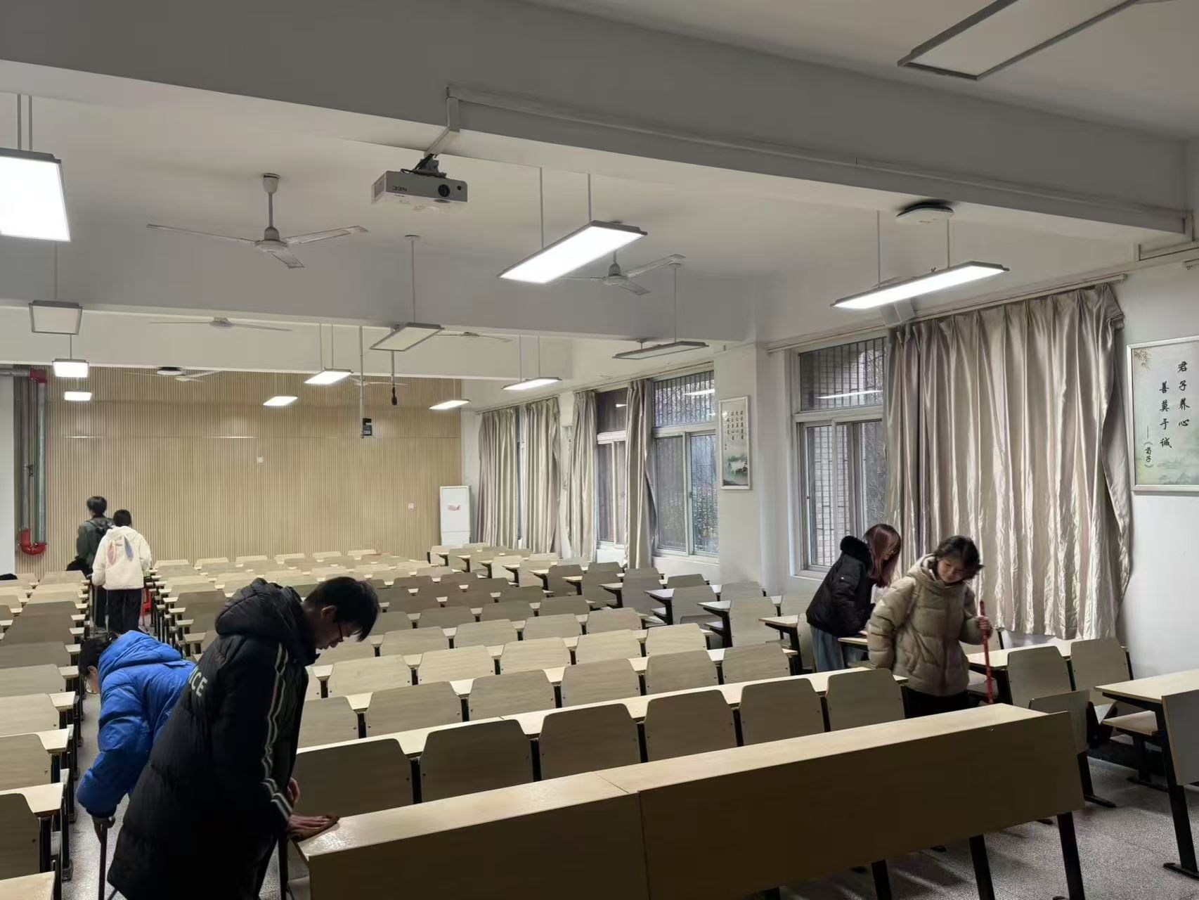 活动前,班级团支部书记召开动员会,分配任务提醒注意事项,并提前与学院办公室和一楼物业协调领取了扫帚、拖把等工具。活动中,同学们以宿舍为单位,分成6个小组,对教室、走廊、楼梯、卫生间等区域进行清扫。大家分工明确,有的扫地、有的拖地、有的擦门窗黑板。经过近两小时劳动,人文社会科学学院楼道教室更加整洁。