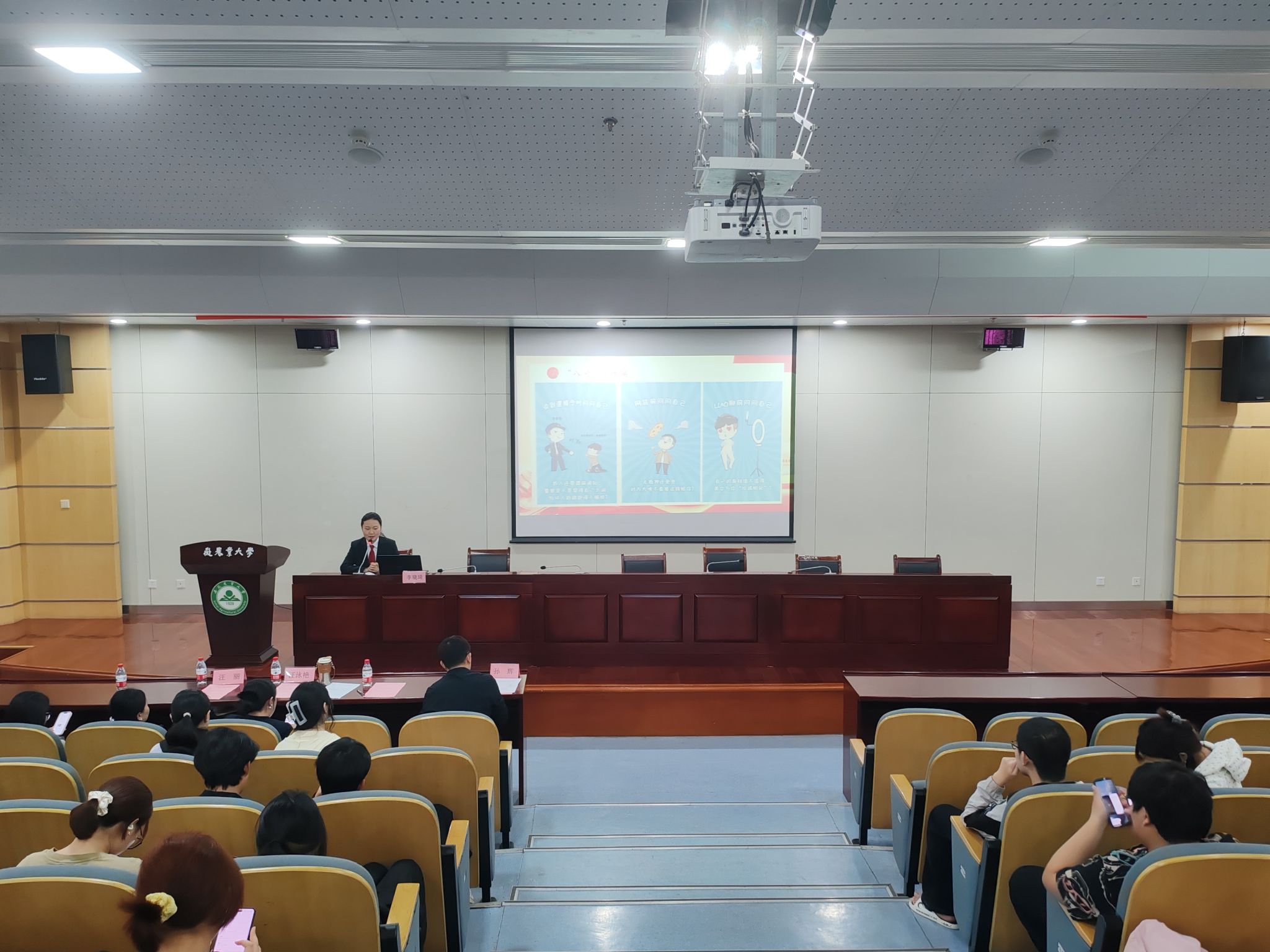 4月16日,学院邀请庐阳区人民法院法官助理李晓琪作《反电诈及其他常见犯罪普法教育》专题讲座,她结合近年来高校频发的AI换脸诈骗、求职陷阱、情感诈骗等真实案例,深度解析犯罪分子的作案模式与心理诱导机制。通过“八问防诈骗”互动教学,指导学生构建系统性反诈思维,现场180名学生参与模拟演练。