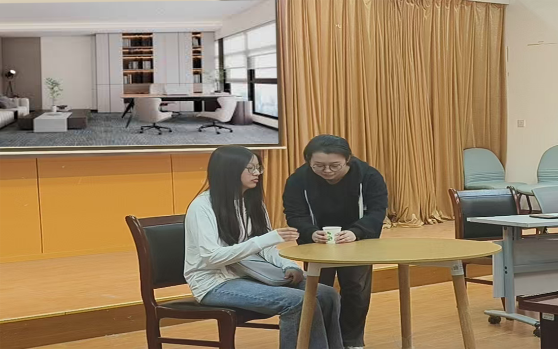 课上,同学们化身为办公室秘书、领导、来访者及同事,生动还原了秘书在日常工作中的多种场景。同学们结合办公室秘书一天的日常工作,从接待宾客、会议安排、上传下达、突发事件处理等多种场合进行实训模拟,把课本上知识在实际中运用。