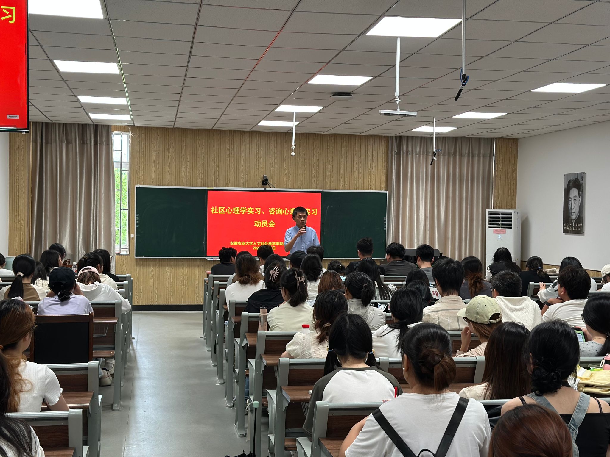 本网讯 为进一步提升实践教学质量和实效,人文社会科学学院于6月6日下午召开2022级和2023级应用心理学专业社区心理学实习和咨询心理学实习动员会,副院长滕瀚出席会议并作动员讲话,院团委挂职副书记胡鹏、实习带队教师代表潘升、实习班级辅导员吴丽雯和姚吴仪参加动员会,会议由心理学系主任刘燊主持。