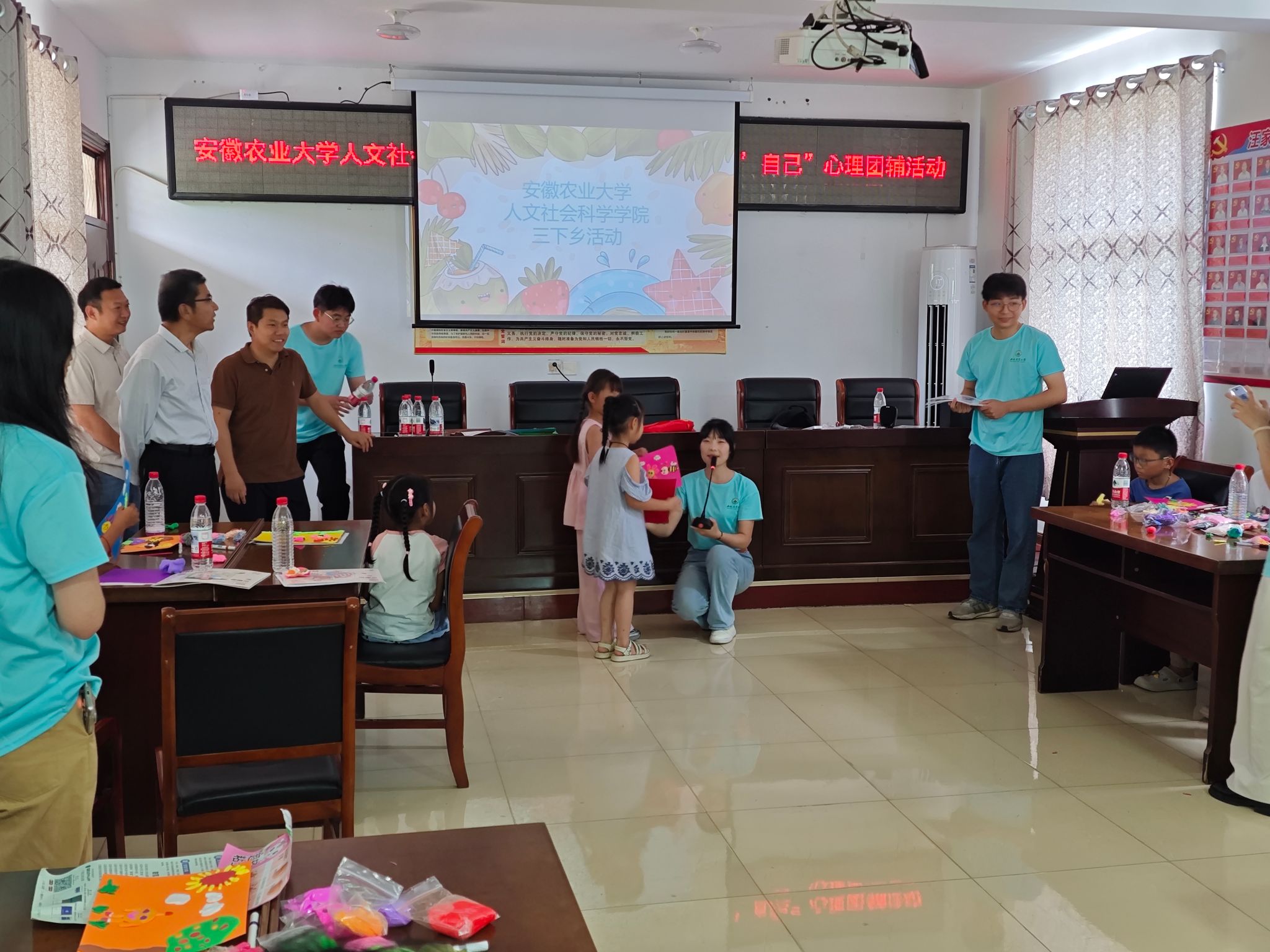 在三口镇汪家桥村委会活动室,董雨副书记详细了解学院暑期“三下乡”社会实践团队师生学习、工作和生活情况,现场指导实践团队开展乡村青少年心理健康团辅活动,与队员们进行深入交流,关心询问同学们的实践成效和感悟,对大家结合专业特色开展的案例分享、游戏体验、手工制作等活动给予充分肯定,并鼓励各位成员要继续发扬吃苦耐劳精神,用爱心和知识为乡村孩童拓展更广阔的视野,在服务基层中增长才干、锤炼品格,为乡村振兴贡献青春力量。他同时叮嘱团队成员要时刻绷紧安全这根弦,确保实践活动安全有序开展。