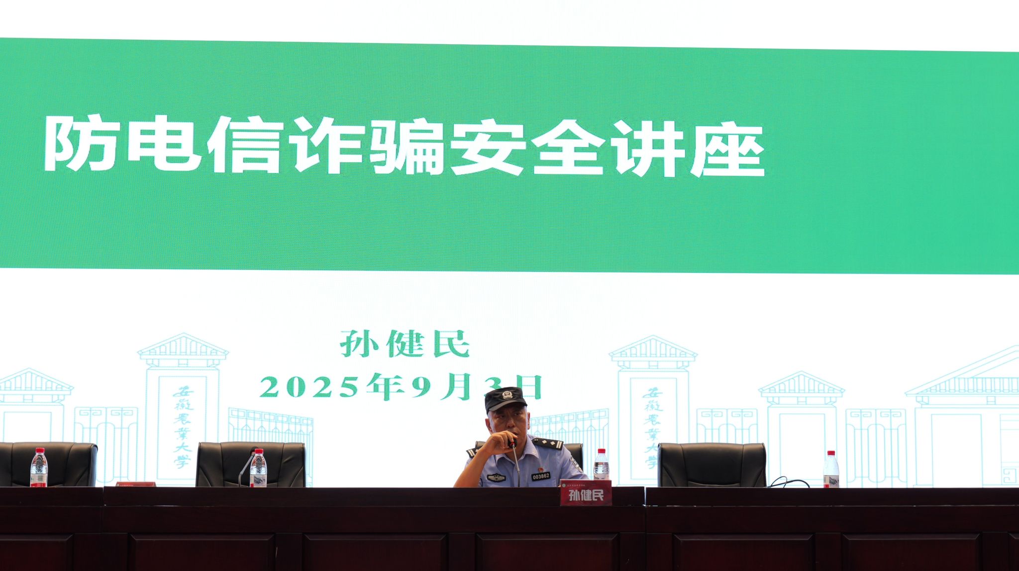 9月3日晚,学院邀请合肥市蜀山区琥珀派出所民警在校图书馆第一报告厅为全体大一新生开展防电诈专题讲座。学院200余名新生现场参会。讲座中,反诈民警结合近年来针对高校学生的典型诈骗案例,以“案例讲解+法律解读+防范技巧”的形式,重点剖析了“校园贷”“刷单返利”“冒充客服退款”“游戏账号交易诈骗”“冒充师长借款”等五类高频诈骗手段。民警通过视频展示、数据对比,直观呈现了诈骗分子的话术设计和作案流程,让新生清晰认识到电诈的隐蔽性与危害性。