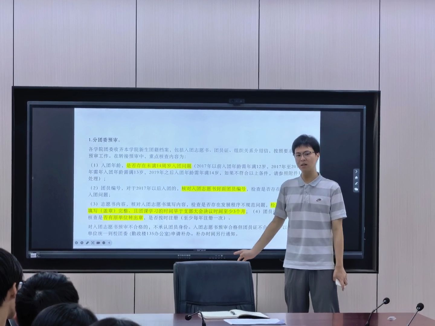 院团委老师对各位新生团干部的任职表示祝贺,希望大家坚定政治立场,增强使命感和责任心,认真对待团的各项工作,为广大团员青年做好服务。院团委委员围绕共青团的性质、团员的责任和义务、班级团支部书记、委员的工作职责、三会两制一课制度等内容进行了培训,对新生团员档案审核、团组织关系转接等具体工作开展了讲解和答疑。