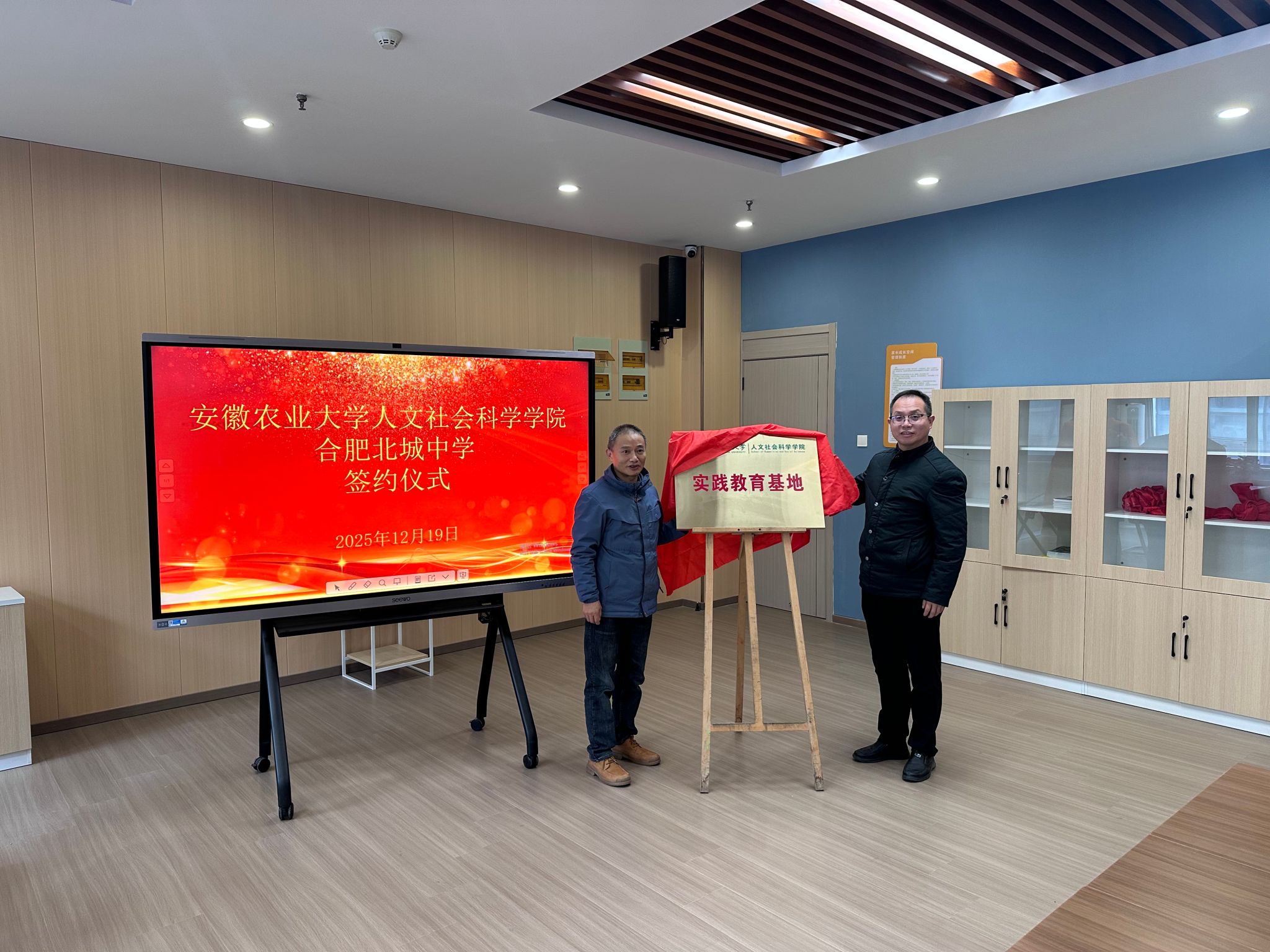 本网讯 为深入推进新文科建设,创新人才培养模式,拓展高校与中学协同育人平台,2025年12月19日上午,安徽农业大学人文社会科学学院与合肥一中教育集团北城分校(以下简称“合肥北城中学”)举行实习基地签约仪式。安徽农业大学人文社会科学学院党委书记王冬平、副院长滕瀚、心理学系主任刘燊,合肥北城中学校长徐祖刚、教务处主任汪涛、心理活动中心负责人谭松林等共同出席活动。