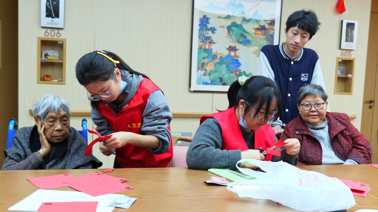 本网讯 元旦来临之际,12月27日,学院应用心理学党支部组织学生志愿者,前往庐阳区照护中心,开展“指间生花,剪映新春”非遗剪纸助老志愿服务活动。