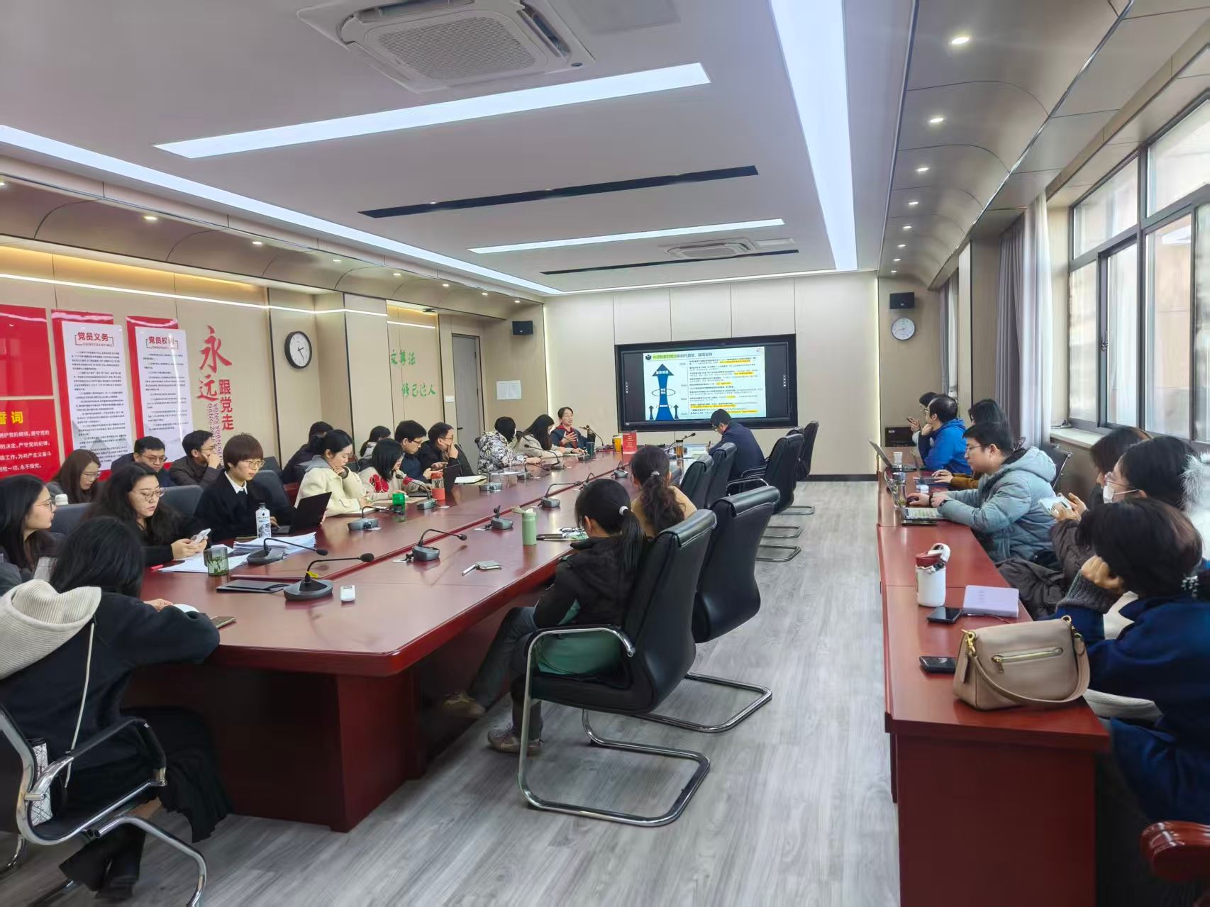 本网讯 2026年1月15日下午,人文社会科学学院举办智慧课程建设专题报告会,邀请宁波大学人文与传媒学院副教授胡泽球作案例分享,学院教学副院长江晓华及全体任课教师参加报告会。
