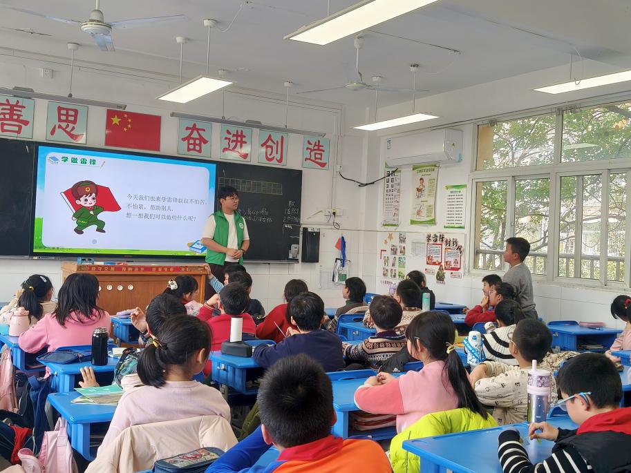 活动伊始,志愿者们绘声绘色地讲述了雷锋的生平故事,将这位榜样的形象从书本中带到孩子们眼前,让雷锋从“遥远的符号”变成了“可感的榜样”。在随后的心理互动环节中,孩子们在老师的引导下,认真回忆并写下身边同学做的好人好事,一句句真诚的分享、一阵阵热烈的掌声,点亮了同伴之间的善意星光。活动尾声,全体学生齐声宣誓,用稚嫩而坚定的童声,许下传承雷锋精神的美好诺言。整场活动环环相扣,既轻松活泼,又富有教育意义。