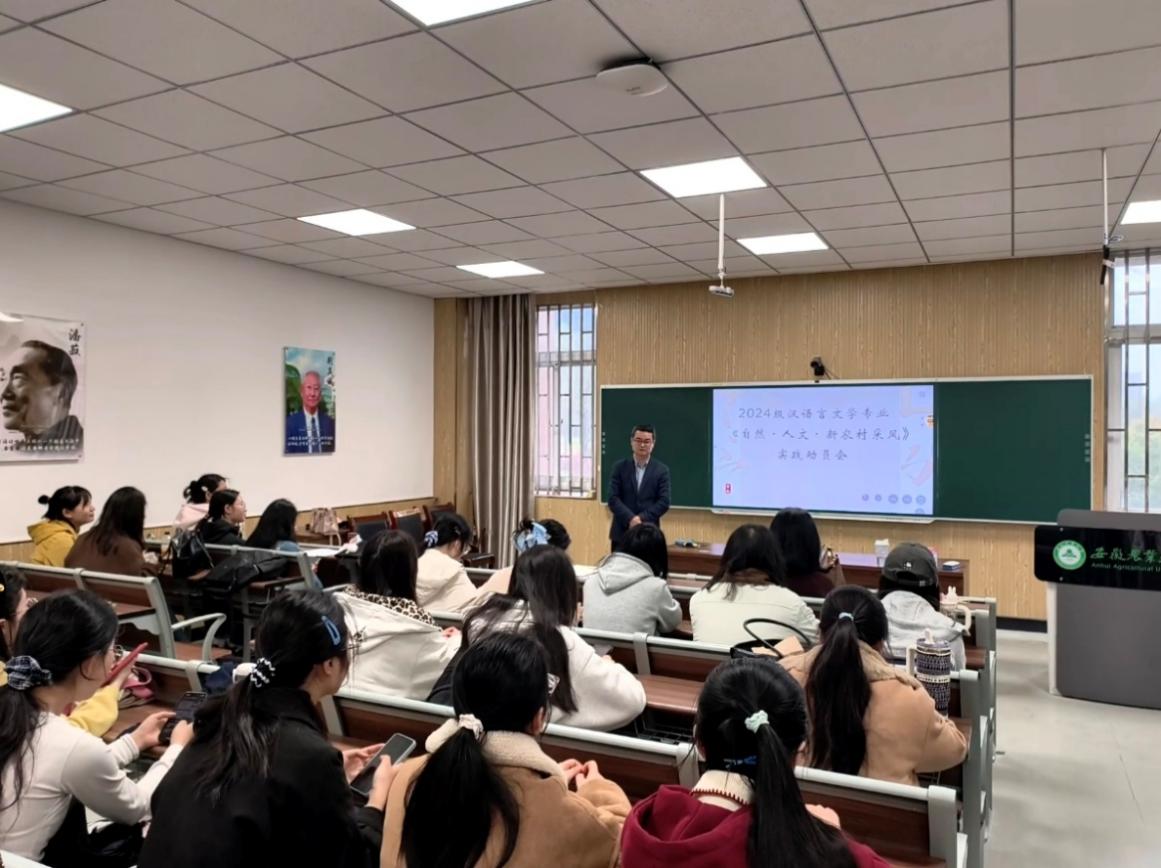 本网讯 3月30日上午9时,人文社会科学学院2024级汉语言文学专业采风实践动员大会在人文楼202教室举行。学院副院长江晓华及中文系教师张艺、沈琳、司念、王雪松等出席,为赴泾县、祁门开展实地采风的同学作动员部署。