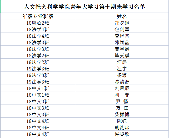 人文社会科学学院青年大学习第十期未学习名单 日期:2022年05月03日 13:57 作者: 点击: 附件【第十期青年大学习未学习名单.xlsx】已下载次 上一条:人文社会科学科学青年大学习第十二期未学习名单 下一条:人文社会科学学院青年大学习2022年第八期未学习名单