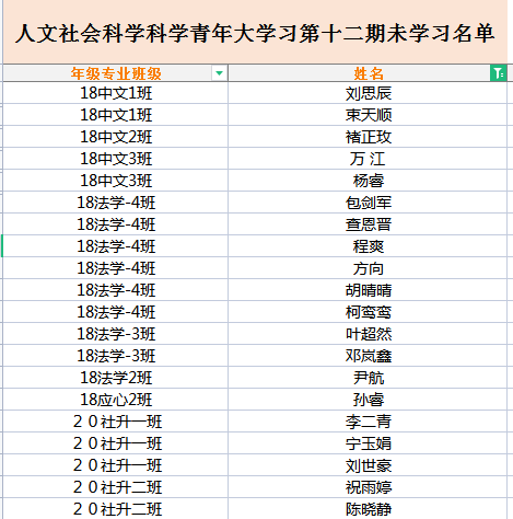 人文社会科学科学青年大学习第十二期未学习名单 日期:2022年05月16日 14:37 作者: 点击: 附件【青年大学习未完成情况.xlsx】已下载次 上一条:人文社会科学科学青年大学习特辑未学习名单 下一条:人文社会科学学院青年大学习第十期未学习名单