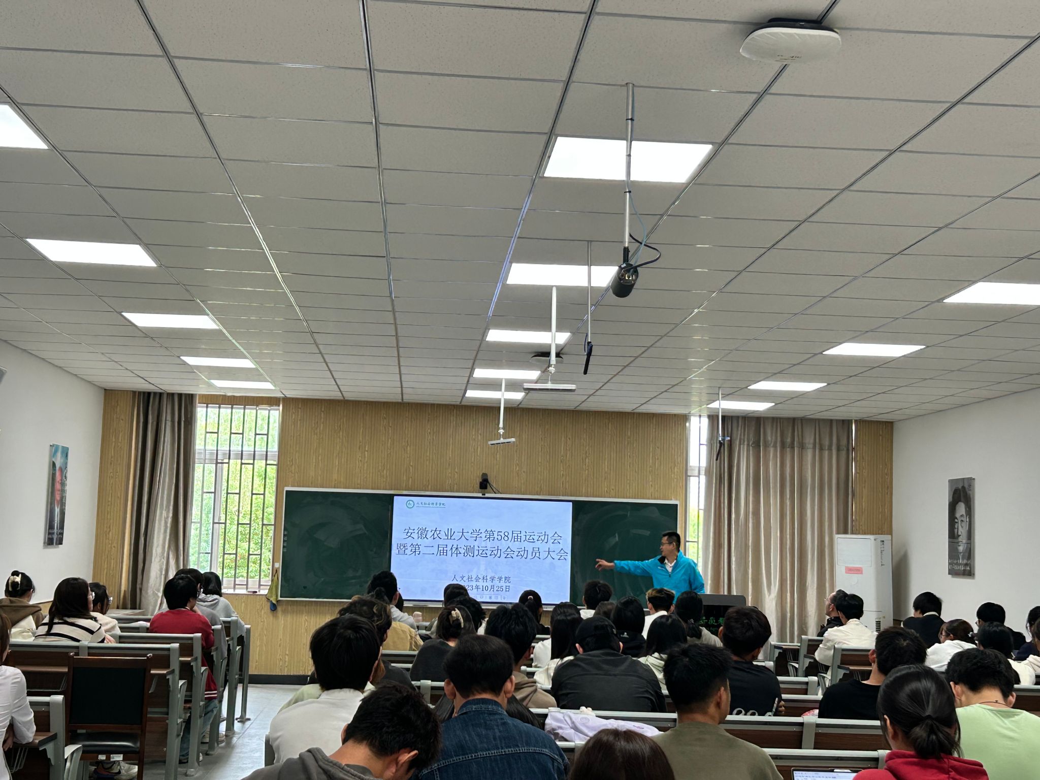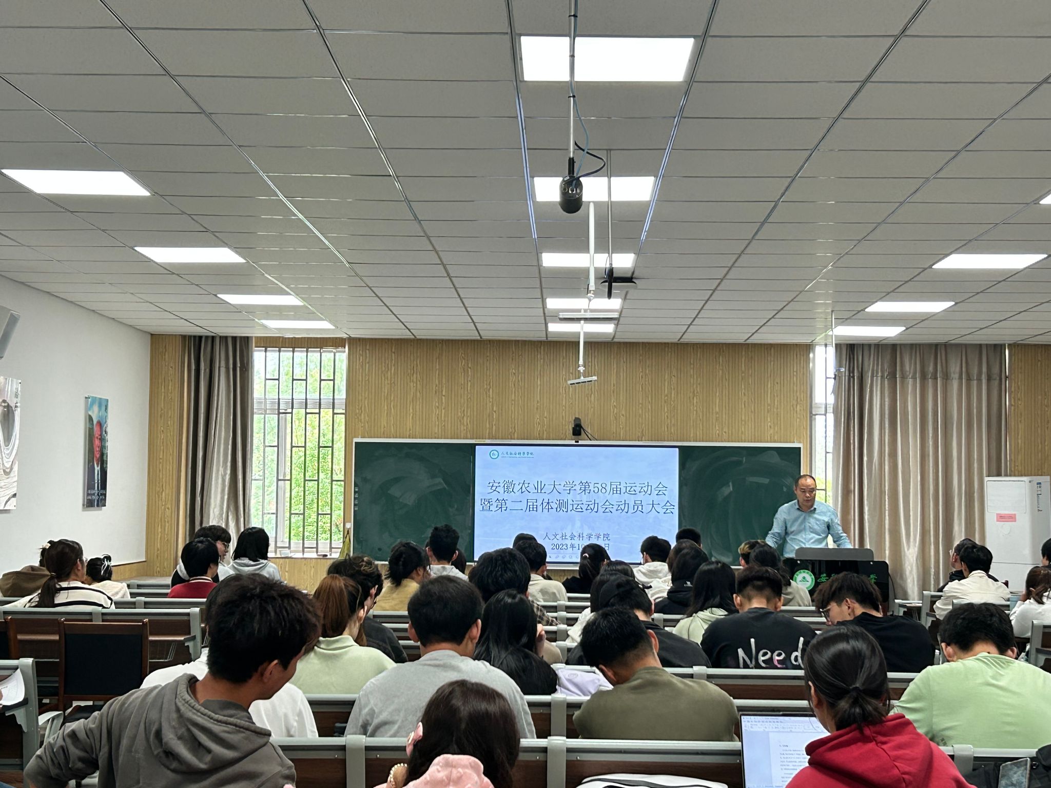 本网讯 为调动运动员训练积极性,增强运动员信心,保障运动会期间各项工作有序进行,10月25日下午,人文社会科学学院召开第58届运动会暨第二届体测运动会动员大会。学院副院长单国雷、体育部副教授岳保柱、全体运动员和院学生会工作人员参加大会。会议由学院团委负责老师主持。