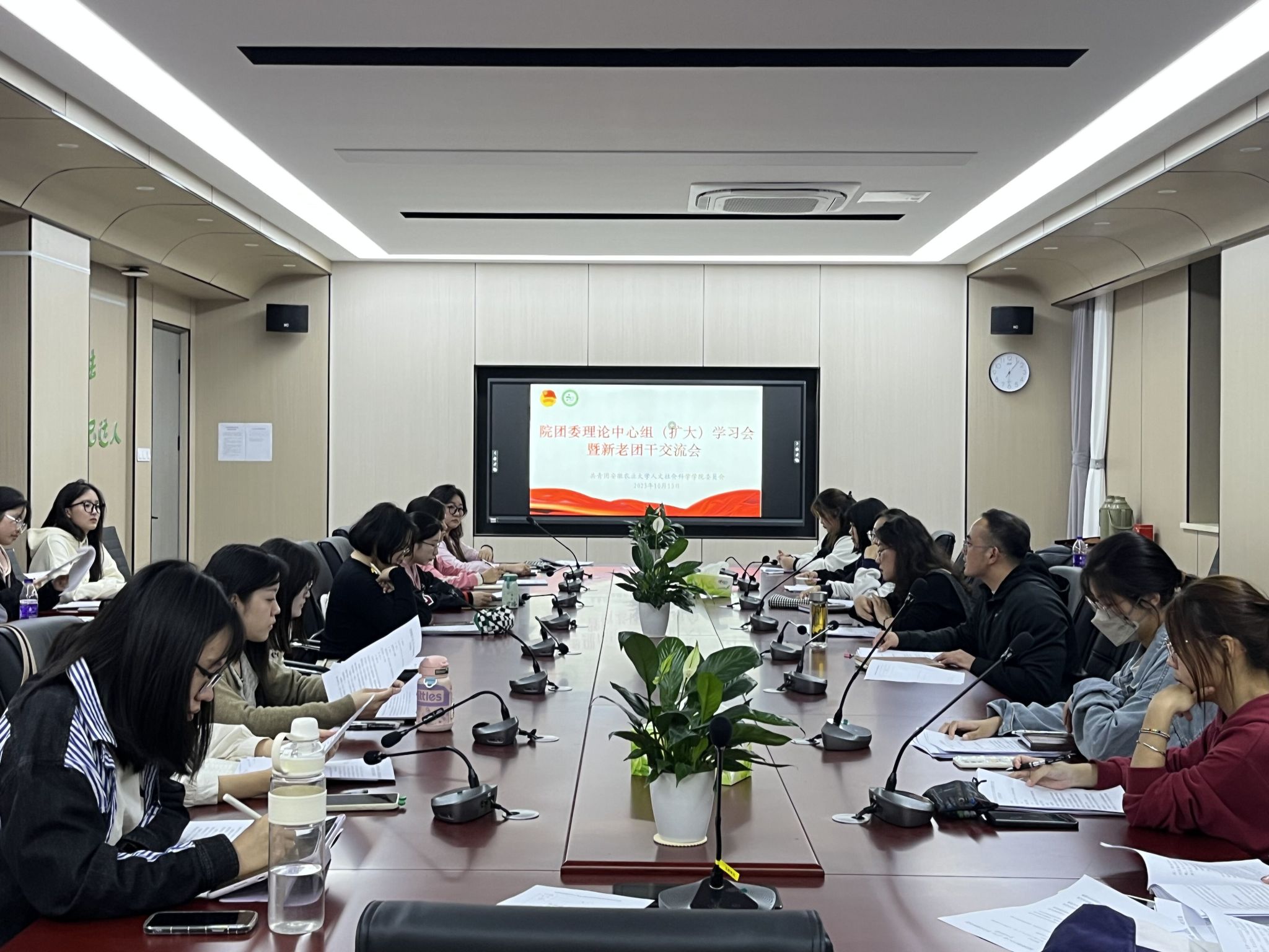 本网讯 10月13日下午,人文社会科学学院在人文楼206会议室召开团委理论中心组(扩大)学习会暨新生团支书培训会。院挂兼职团委干部、团支部成员、新生团支书参加本次会议。会议由院团委负责老师主持。