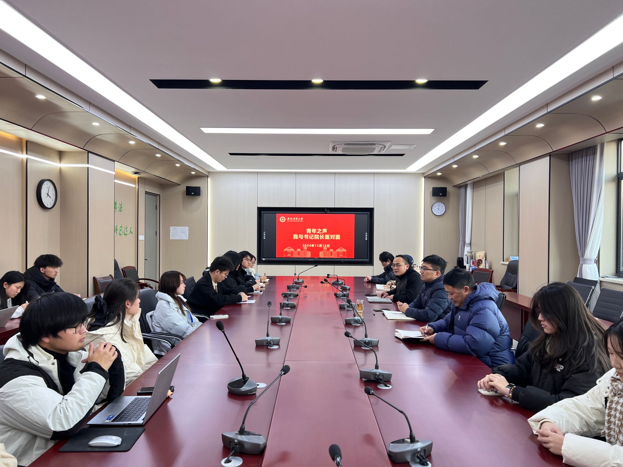 会上,与会领导着重指导学生代表就学业生活中的实际问题和挑战提出宝贵意见和建议,鼓励大家积极参与到学校与学院的发展规划中来。会上氛围积极活跃,同学们围绕学生工作、学习生活等方面展开了深入的交流与讨论,提出了诸多富有建设性的意见。学院领导认真听取并逐一回应了学生们的关切,对学生的主人翁意识和对学院发展的深切关怀给予了高度评价。同时,领导们也勉励同学们要勇于面对挑战,锤炼坚韧不拔的精神品质。