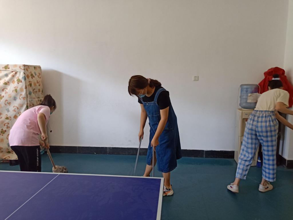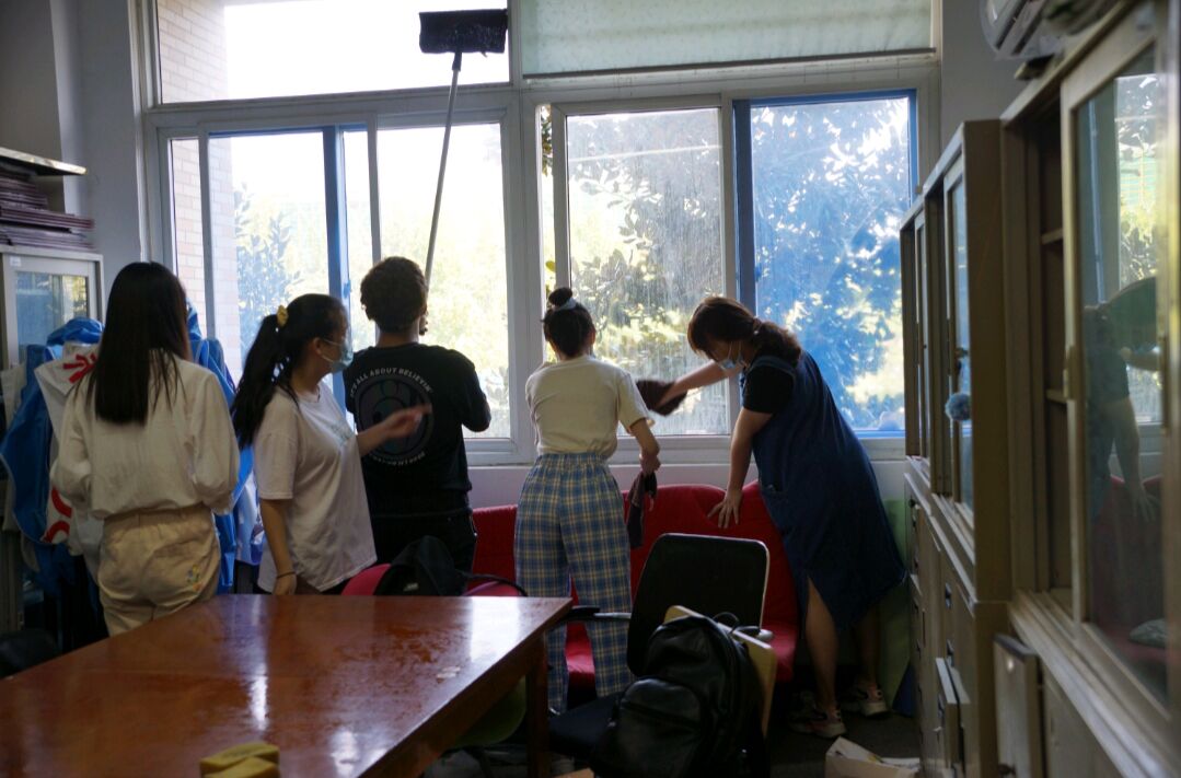 活动开始,同学们都打起十二分精神,扫地、拖地、擦窗户……忙的不亦乐乎。忙碌间,大家还不忘与老师们谈学习、聊家常,并提前送上节日的祝福。