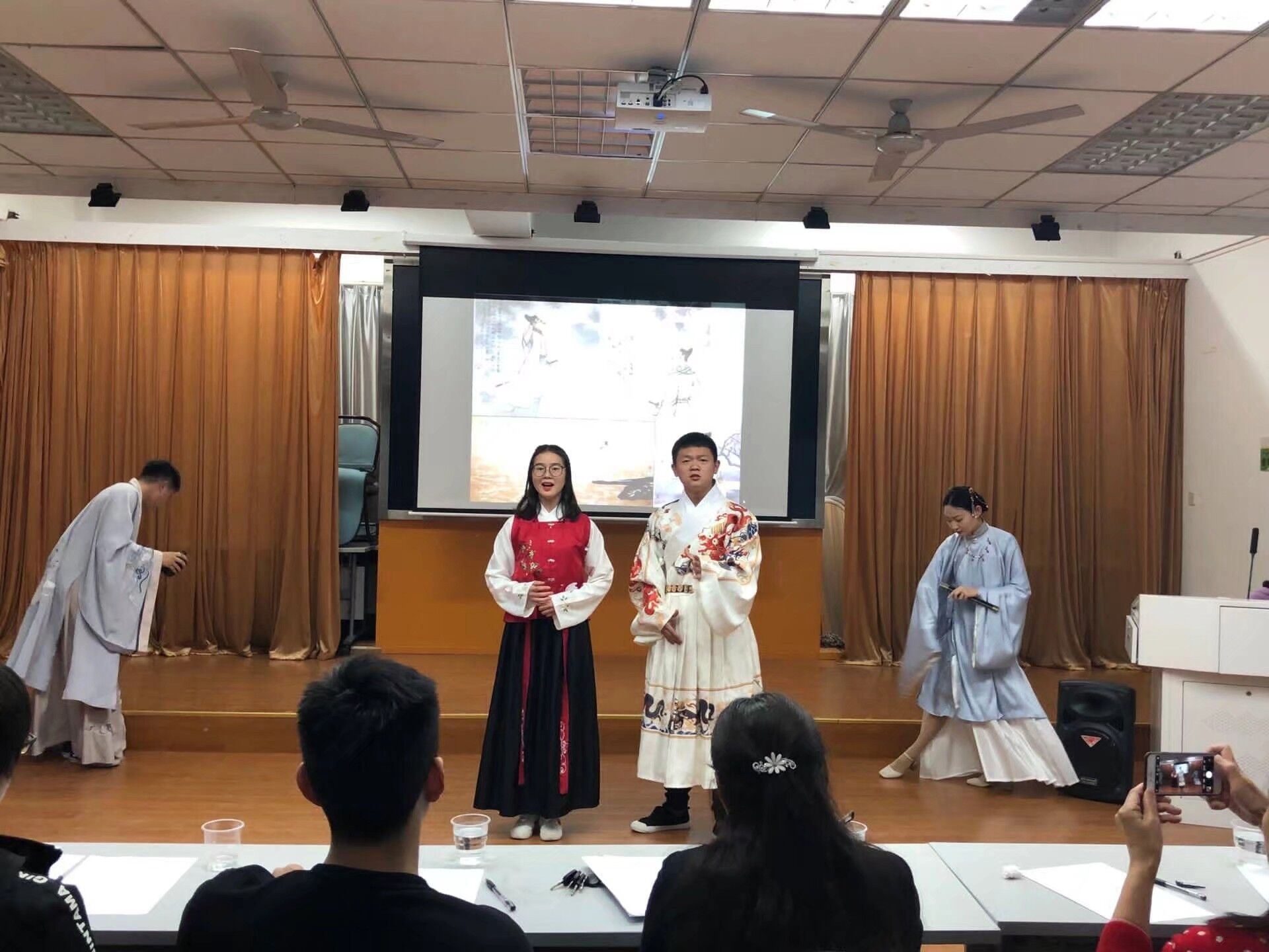 学院成功举办第十四届“讯飞杯”全省大学生诗文朗诵比赛选拔赛 日期:2019年04月17日 00:00 作者: 点击: 本网讯 为弘扬中华民族优秀传统文化,提高新时代大学生人文素养,庆祝新中国成立七十周年,4月16日晚,第十四届“讯飞杯”全省大学生诗文朗诵比赛学院选拔赛在人文楼602多媒体教室成功举办。经过前期学生自由组队报名,共有11支队伍顺利来到本次选拔赛现场,进行同台竞技。本次比赛主评委由人文社科学院专业教师担任,特别邀请白玉兰文学社主要负责人担任嘉宾评委。 伴着美妙的音乐,朗诵比赛缓缓拉开了帷幕。依照赛前抽签顺序,选手们逐一登台,或激昂,或柔缓,或急促,或随和。作品《将进酒》为大家带来一段精彩绝伦的剑舞,一句“与尔同销万古愁”将诗仙的旷达与不羁表现的淋漓尽致;《天问》将屈原对追求世间真理的情感侵泄而出,不禁让人感叹“先生虽已逝,千古意未歇”;《我骄傲,我是中国人》声声高亢,让在座观众从作者的激情中体会到“愿我华夏人人如龙的美好祝愿”。此外,《中华少年》更是把对祖国大好河山、灿烂文化的热爱,凝聚在中华少年顶天立地的坚强决心里。参赛选手或个人或组合,以饱满的热情,激昂的气势,铿锵有力的语言,自信大方的形象赢得评委老师和观众的阵阵掌声。经过一个多小时的角逐,依据在场评委评分,最终《中华少年》、《将进酒》(并列)夺得本次大赛冠军,《天问》、《青春中国》(汪颖组)分列二、三位。 随着颁奖仪式的结束,本次诗文朗诵比赛也圆满落幕。相信通过本次诗文朗诵大赛的成功举办,不仅丰富了同学们的课余生活、提升了同学们对中华优秀传统文化的认识,也为即将到来的祖国七十周岁生日献上一份礼。五千年中华文明的传承烙印在我们的灵魂里,时刻激励着我们不论风雨荆棘,必将砥砺前行。 上一条:学院举办“青年之声·我与书记院长面对面”暨纪念五四运动100周年主题活动 下一条:2012年12月院文明宿舍、校星级宿舍名单