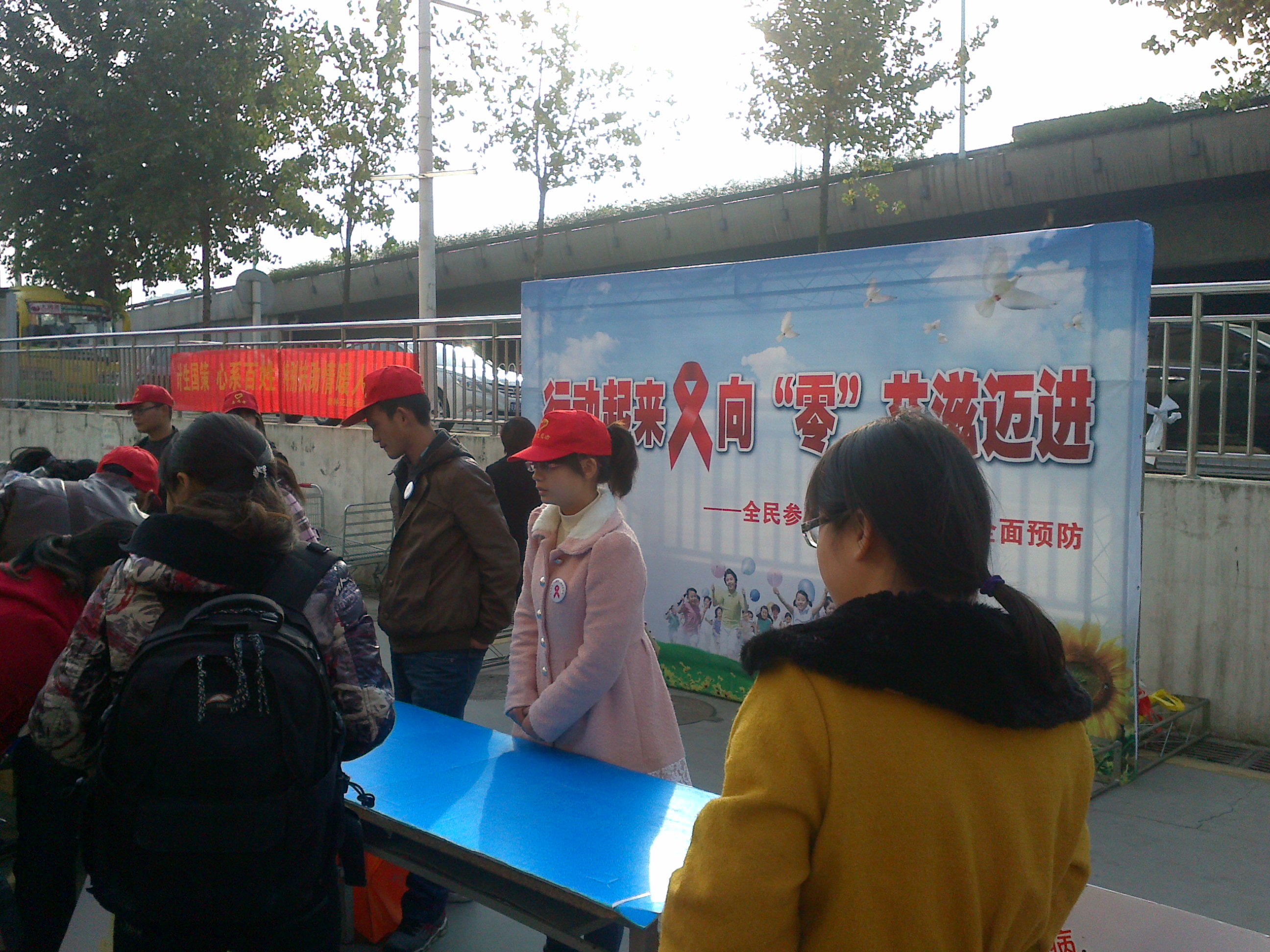本网讯 2012年11月29日,我院公益活动部部分国助生参加了由琥珀街道社区居委会举办的“行动起来,向零艾滋出发”社区活动。