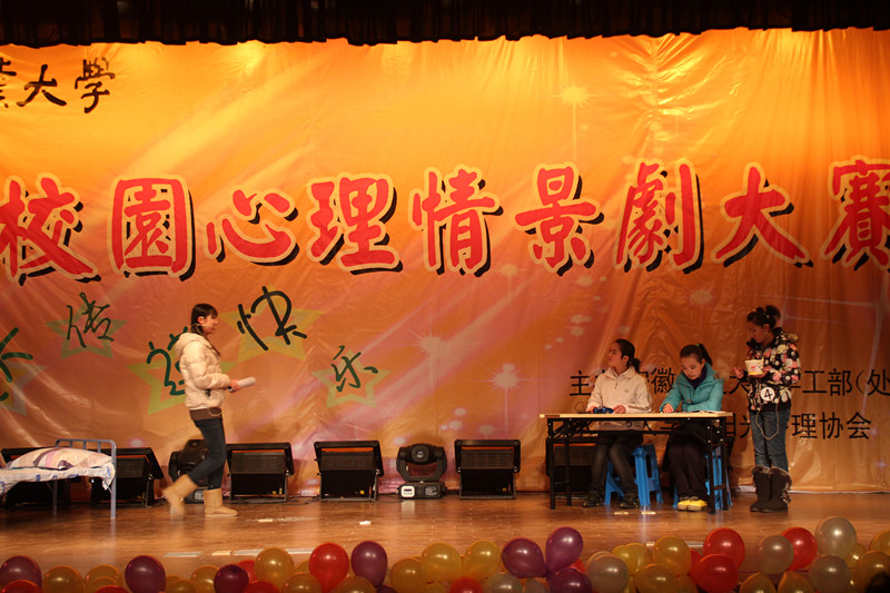 本网讯 12月16日上午,由安徽农业大学学生处心理健康中心主办的“第四届心理情景剧大赛”落下帷幕。我院代表队以专业的视角、精湛的演技和紧凑的舞台效果,赢得了评委、老师和同学们的好评,一举获得一等奖、优秀剧本奖、优秀演员三项大奖。