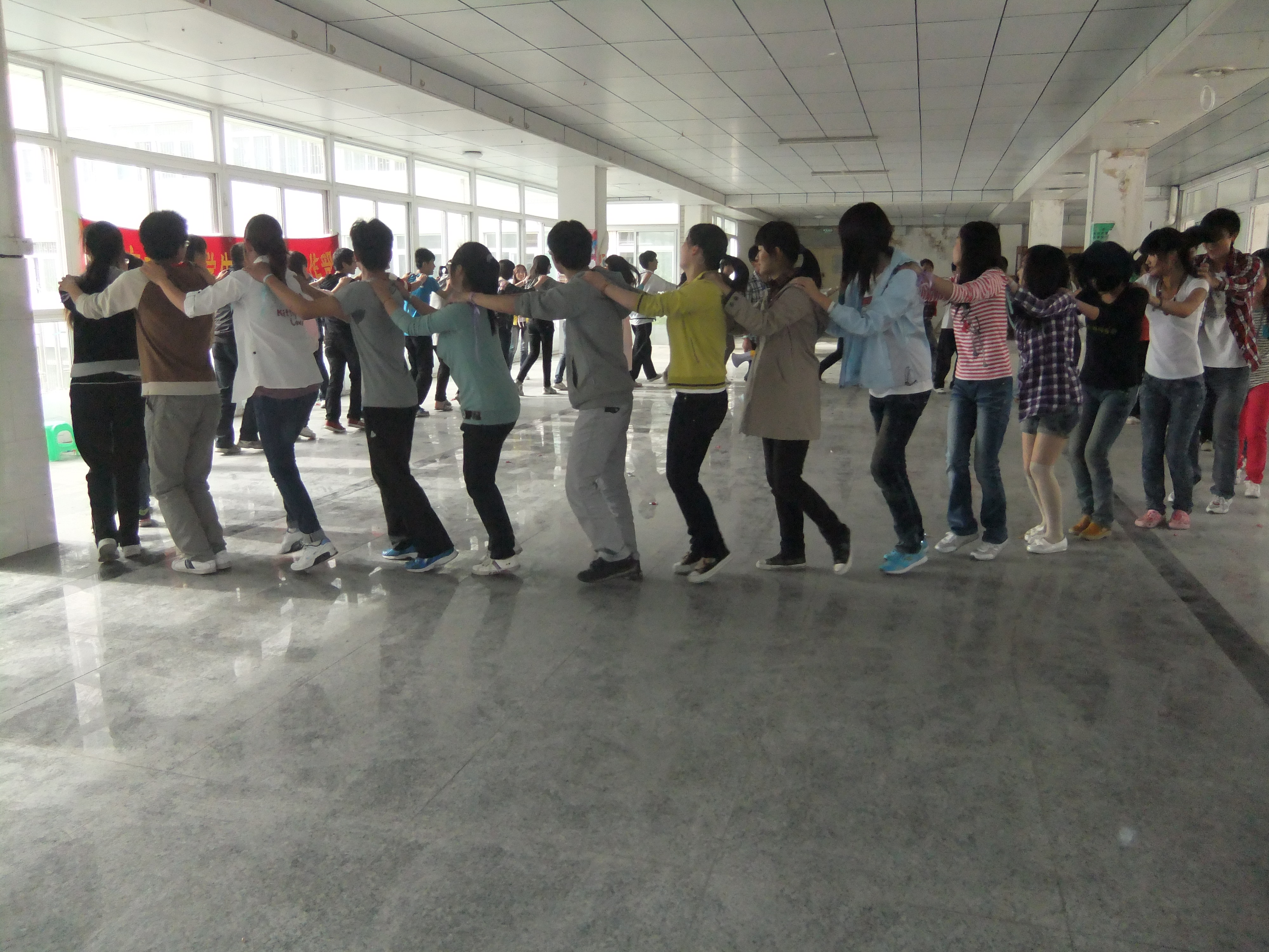 参赛活动从责任诚信、自律自强、团结协作、行为习惯等方面出发,对2011级心理学专业学生进行培训。培训活动包括“无敌风火轮”、“地雷阵”、“星火相传”、“桃花朵朵开&花开花落&金钱抱&集体兔子舞”四个部分。尤其在“无敌风火轮”活动中,同学们相互合作,默契配合,有序高效地组织各队完成相关任务,将培训活动推向了高潮。