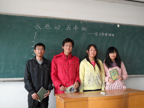 2011级应用心理学专业召开“学习雷锋精神”主题班会 日期:2012年03月30日 00:00 作者: 点击: 本网讯 3月21日, 2011级应用心理学专业在8教412教室举行主题为“我感动,我奉献——学习雷锋精神”主题班会。 1963年3月5日,毛主席发出向“雷锋同志学习”的号召,“雷锋精神”教育和鼓舞着一代又一代中国人。2011级心理学专业的师生利用演讲比赛的形式,通过朴实的语言、真挚的情感,演绎当代雷锋的故事,号召广大学生从自身做起,从身边的每一件小事做起,使学习雷锋变为我们每一个人的自觉行动,让成千上万个雷锋成长起来,让雷锋精神永放光芒。 上一条:我院举行师生乒乓球友谊赛 下一条:爱我寝室 秀我风采